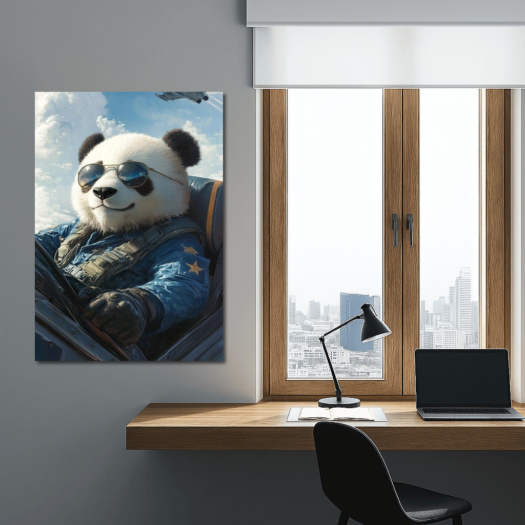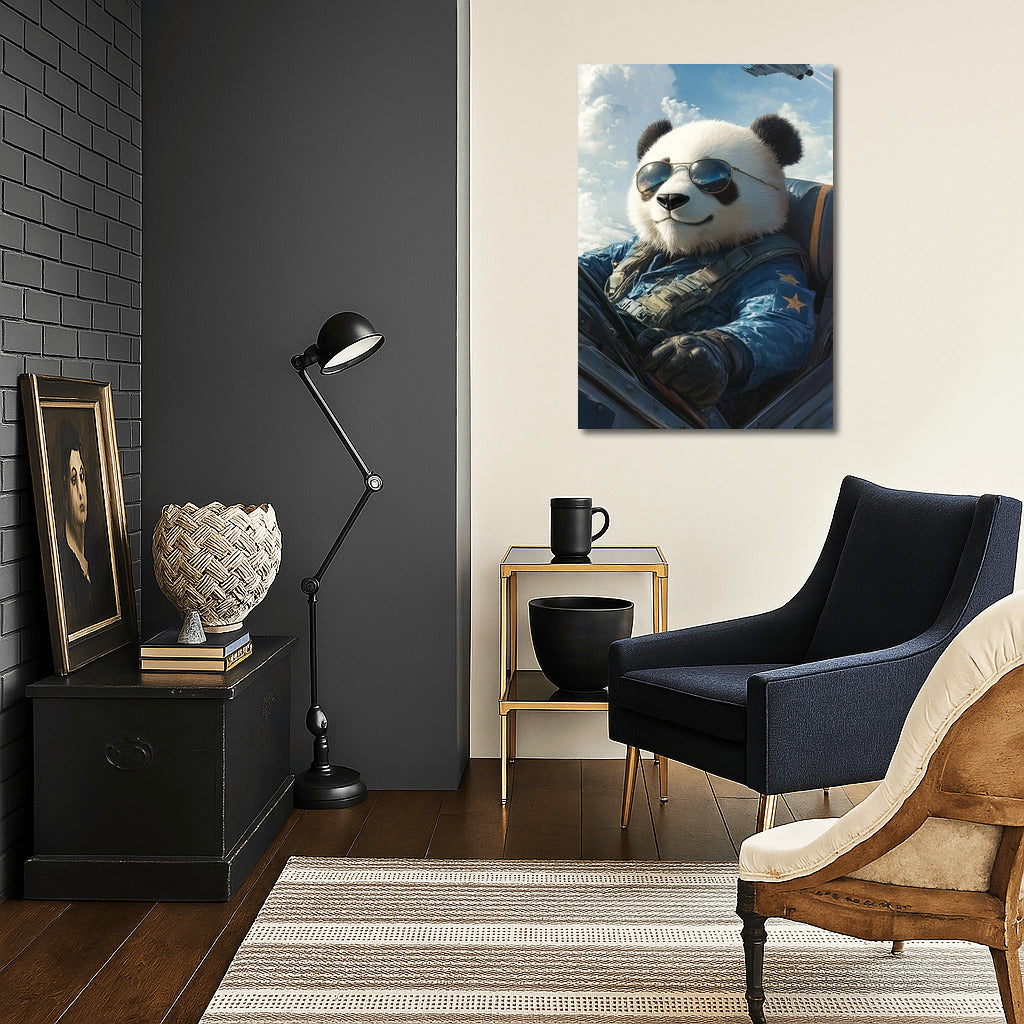 Give your space a little kick with this poster of a panda pilot in a jet cockpit! Wall art that inspires. See more from the collection: Military & Veterans Art