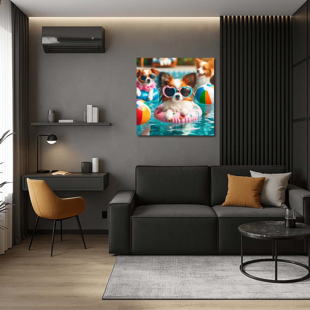 Papillon at the Pool Party: Summer Dog Adventures Wall Art
