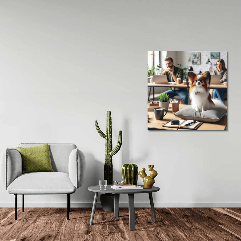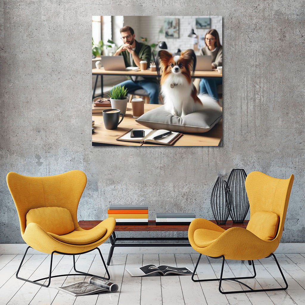 Papillon in Coworking: Dog Game in the Office Wall Art