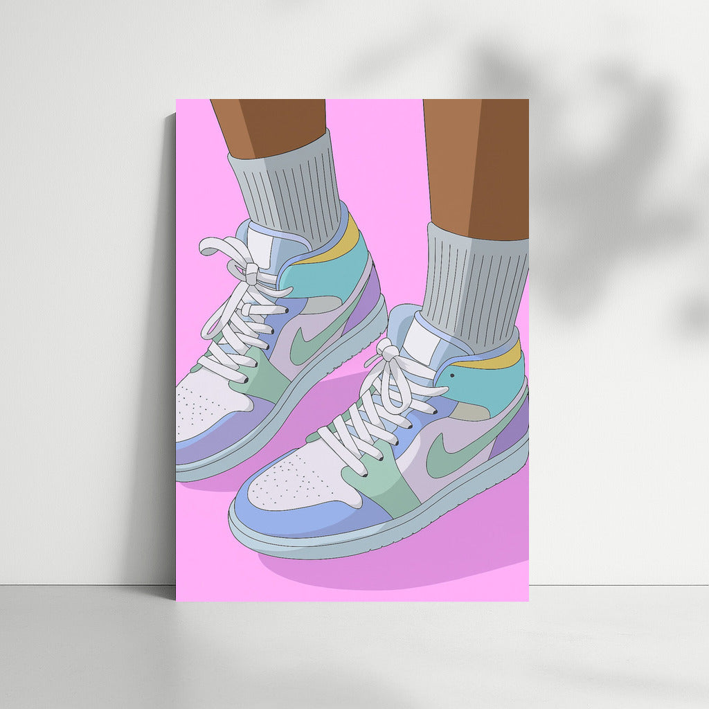 A vibrant poster painting of pastel Nike sneakers will add style and movement to any space. Wall art inspired by movement. See more from the collection: Nike Art