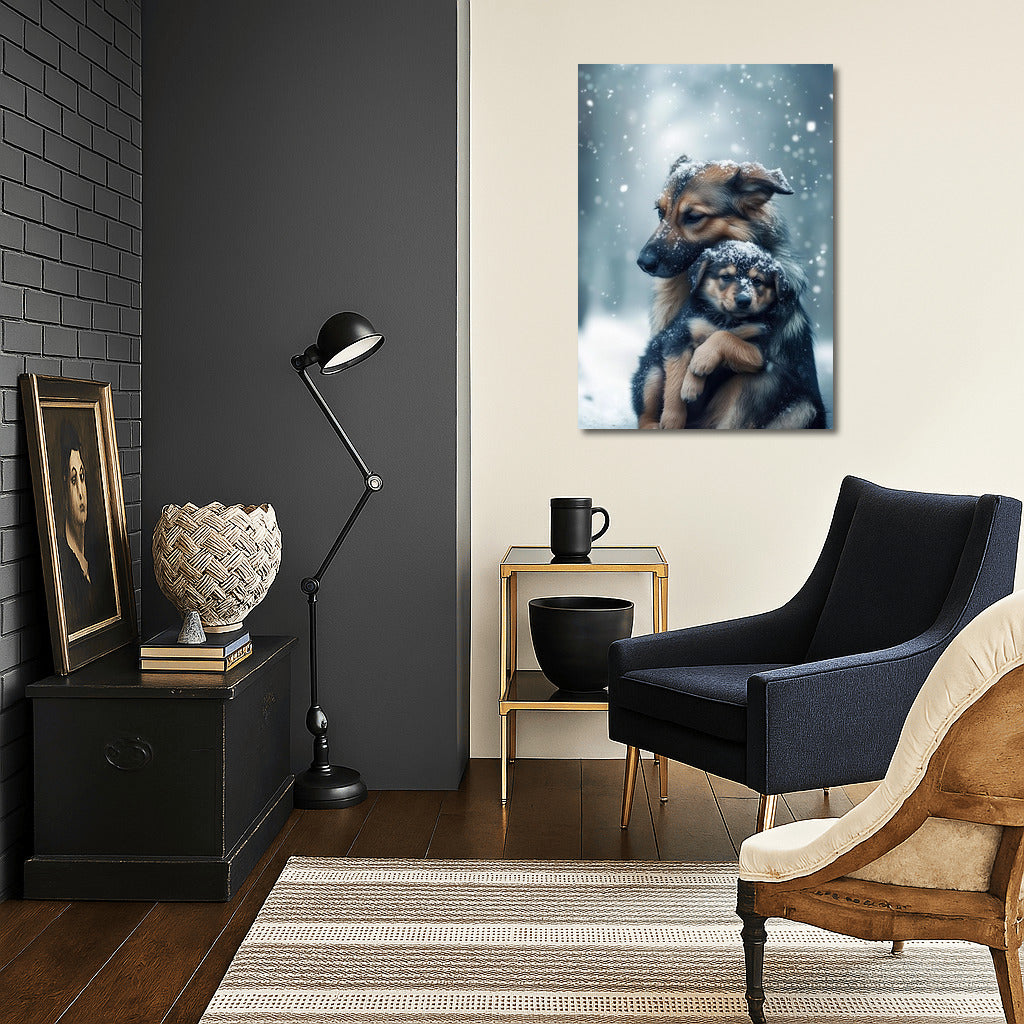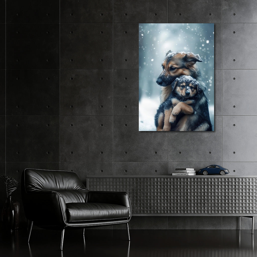 Snow Fairytale: A gentle winter scene with dogs on your poster. The magic of nature in every moment of wall art. See more from the collection: Animals Art