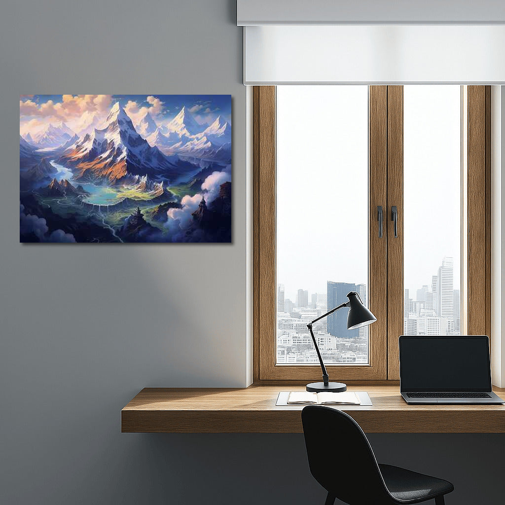 Open the doors to a fantasy world with this breathtaking poster. Mountain peaks and the magic of nature on your wall art! See more from the collection: Fantasy Art