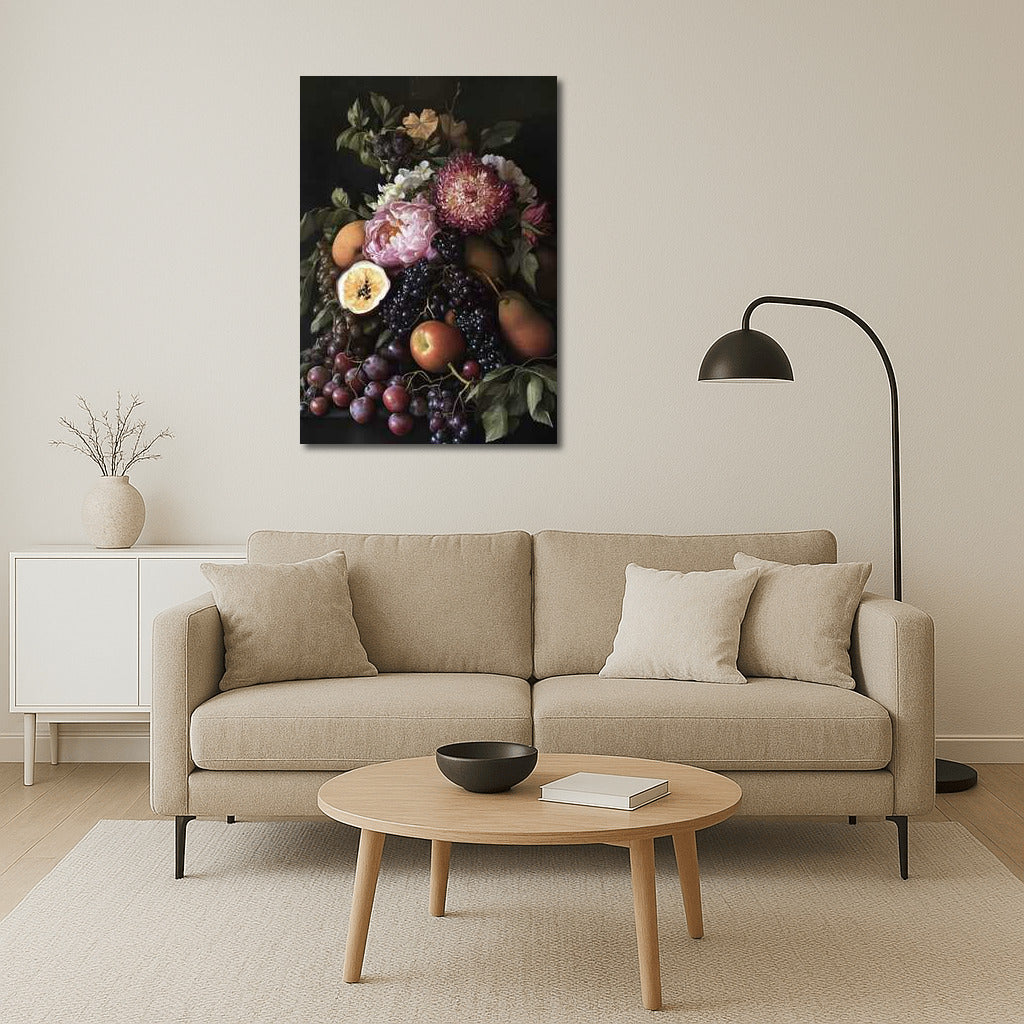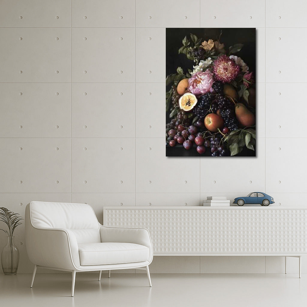 Immerse yourself in the exquisite charm of floral peonies and juicy fruits in this poster - wall art perfection. See more from the collection: Flowers Art