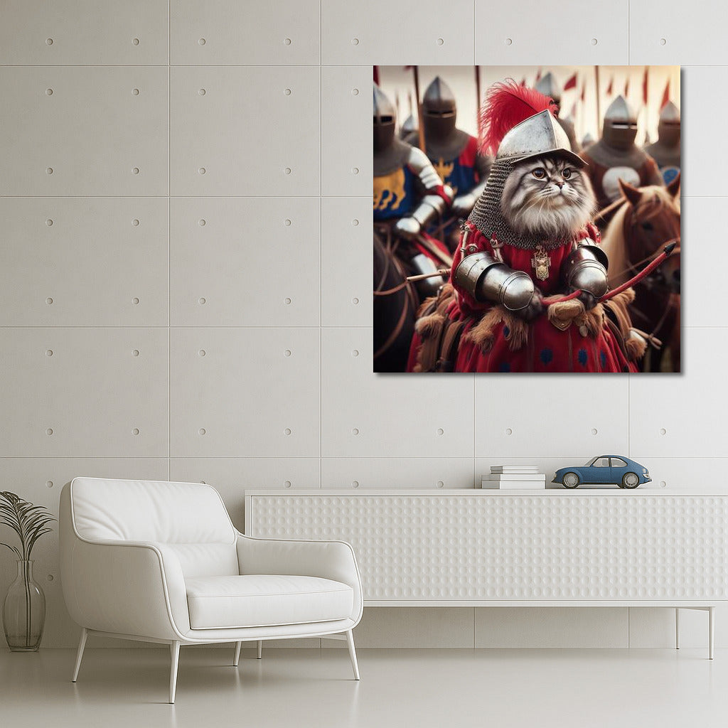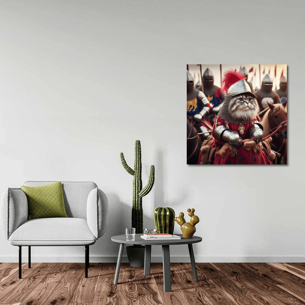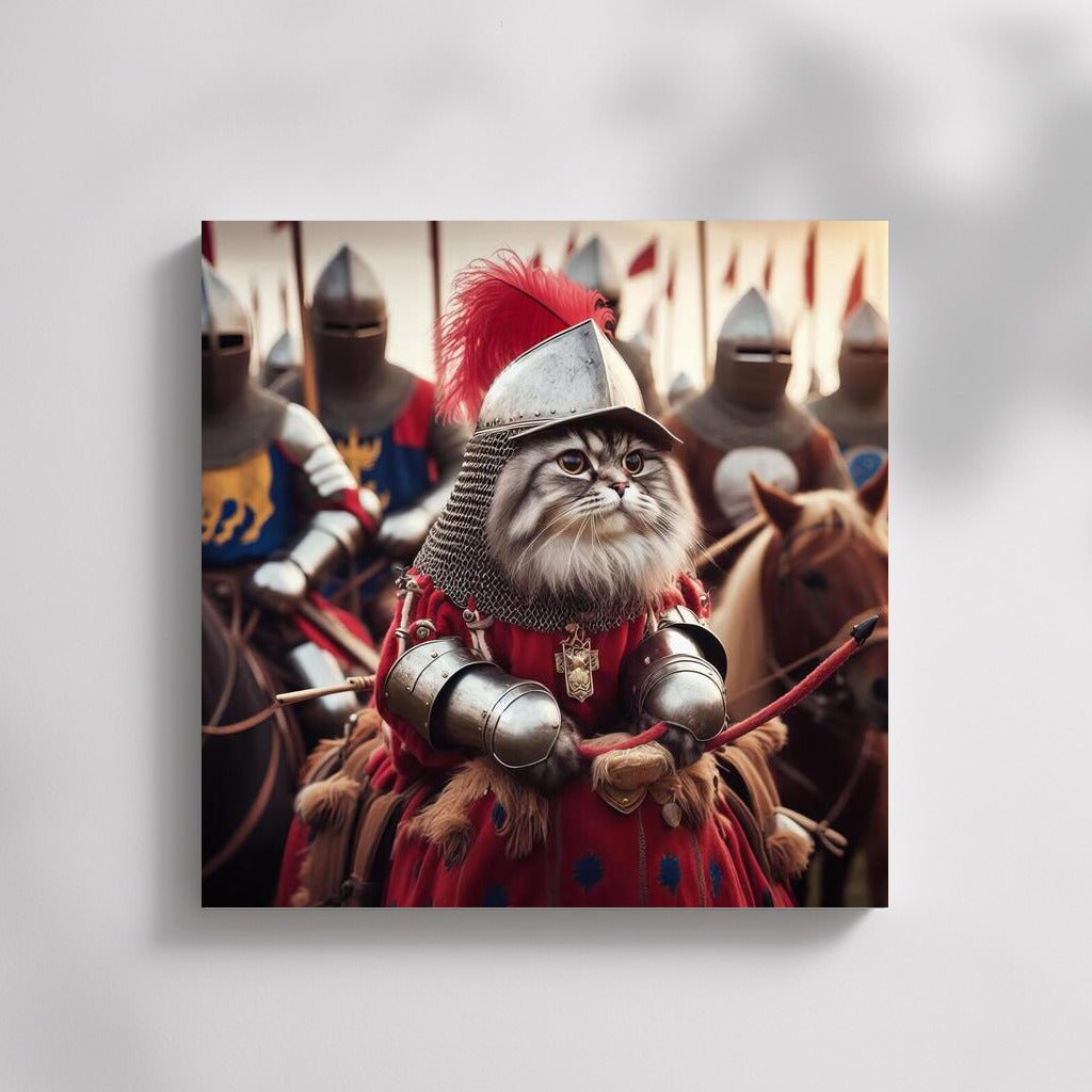 Immerse yourself in the magic of the Middle Ages with the poster: Persian cat in armor at a knight's tournament - unique wall art! See more from the collection: Animals Art