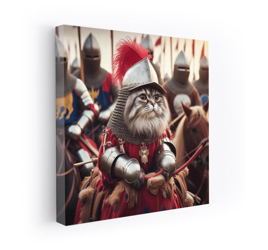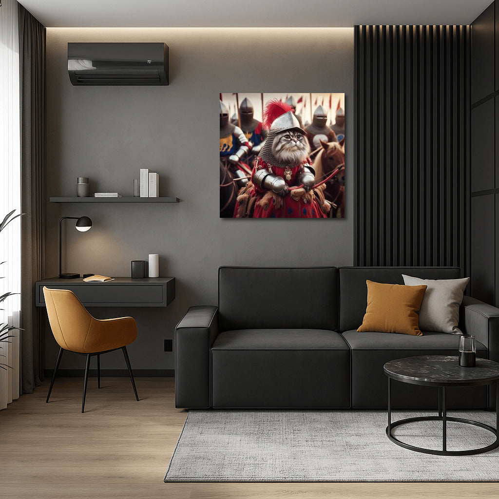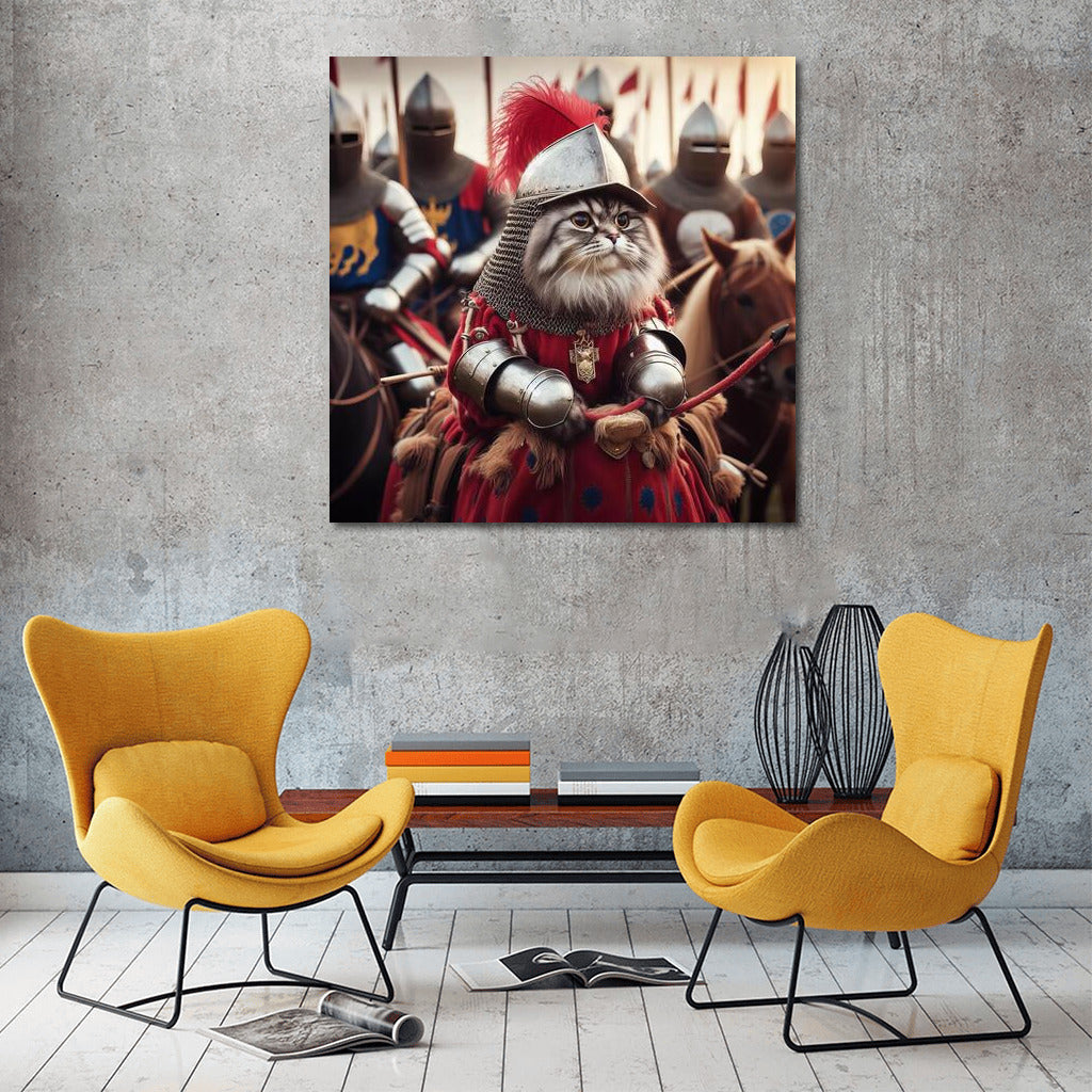 Immerse yourself in the magic of the Middle Ages with the poster: Persian cat in armor at a knight's tournament - unique wall art! See more from the collection: Animals Art