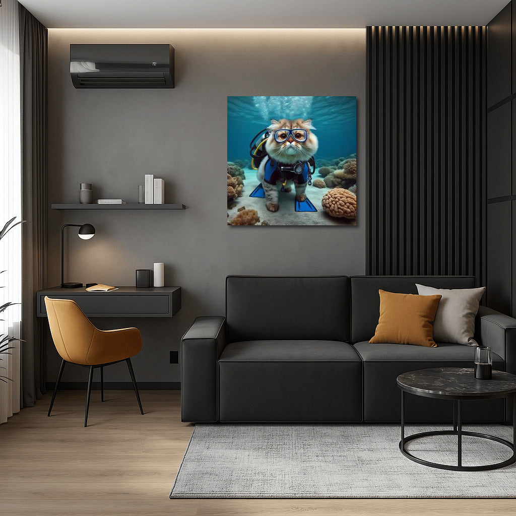 Persian Cat on Underwater Adventure: Scuba Diving Explorer Wall Art