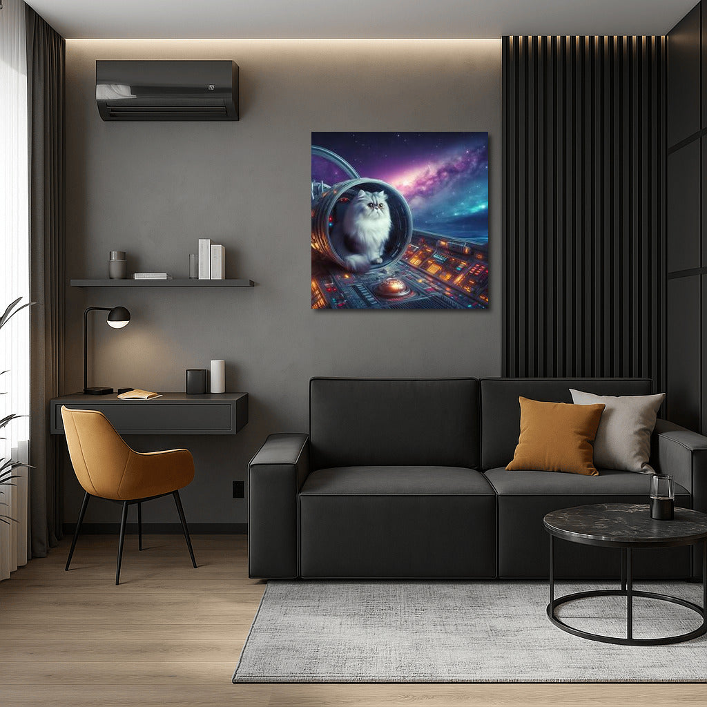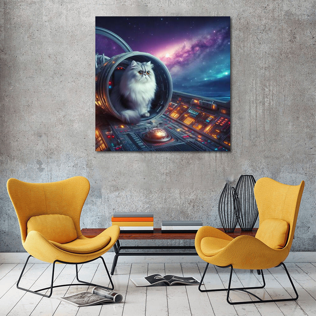 Poster: Persian cat in a spaceship exploring distant galaxies. Perfect wall art for dreamers! ?✨ See more from the collection: Animals Art