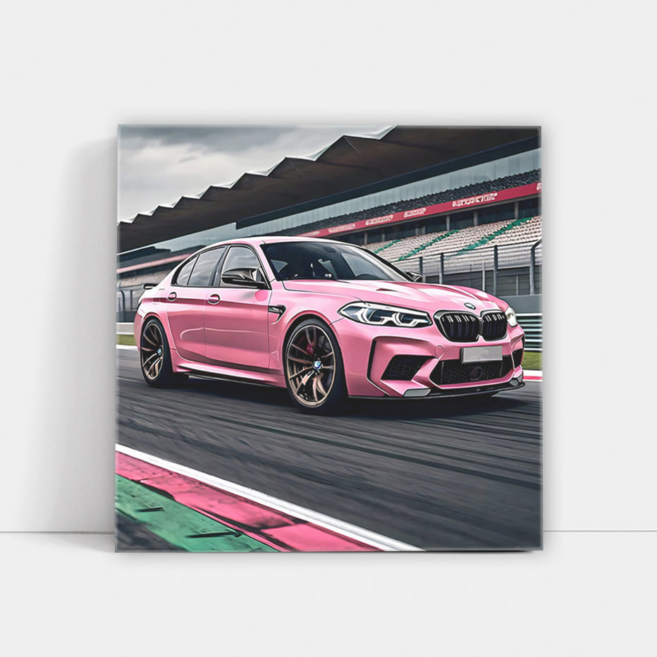 Pink BMW M5 on Racing Track - Speed Meets Style Wall Art