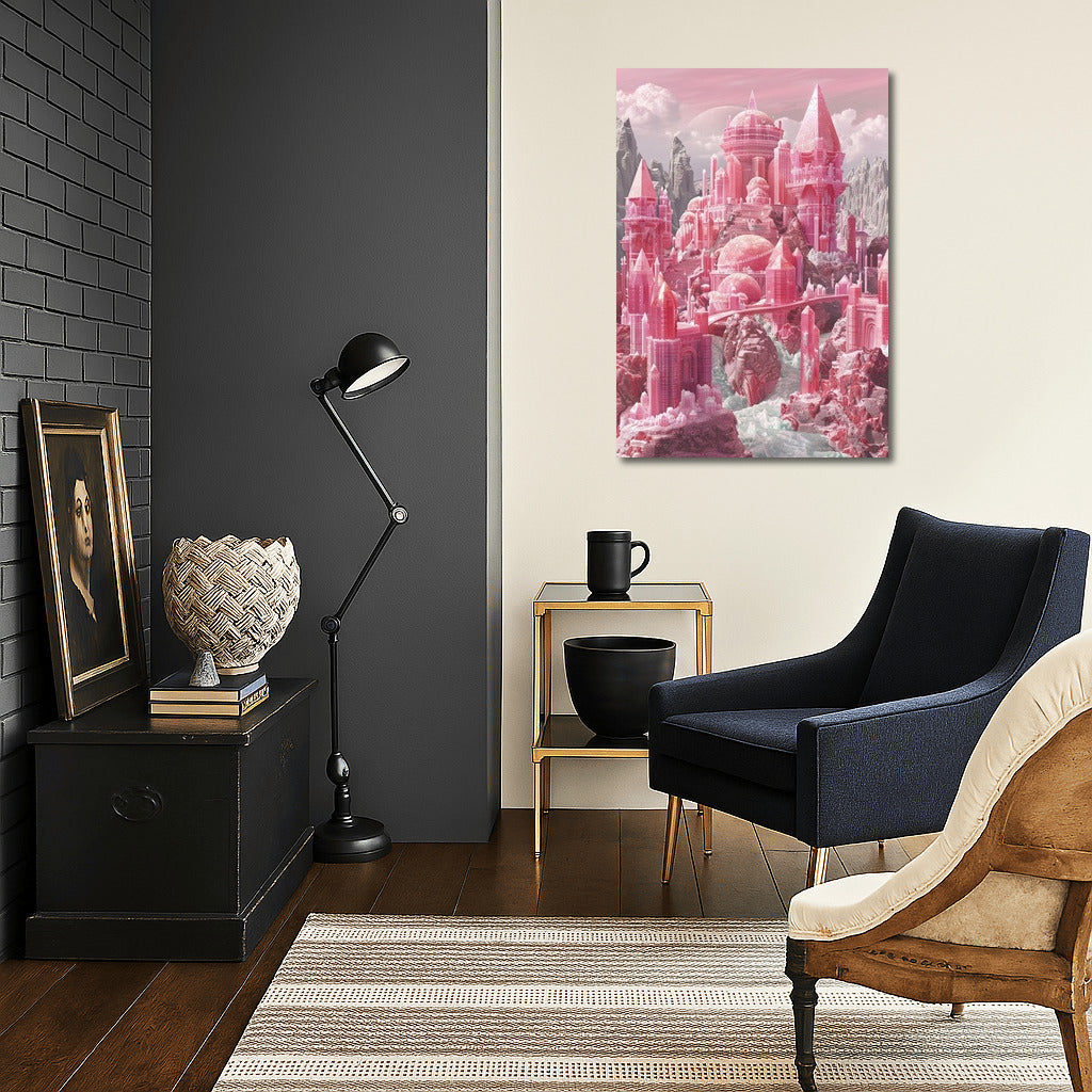 Dive into the fantasy world of a pink castle with this vibrant poster. Wall art that will inspire dreams! See more from the collection: Mixed Wall Art