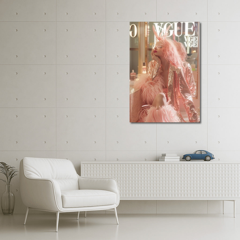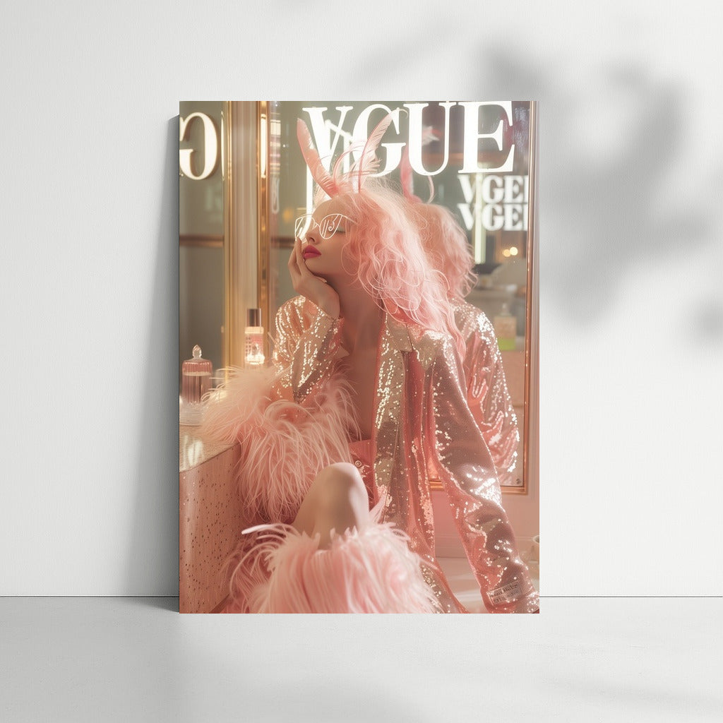 Vivid painting: girl in pink glamour, glitter and fashion. Incredible poster for stylish wall art. See more from the collection: Fashion Art