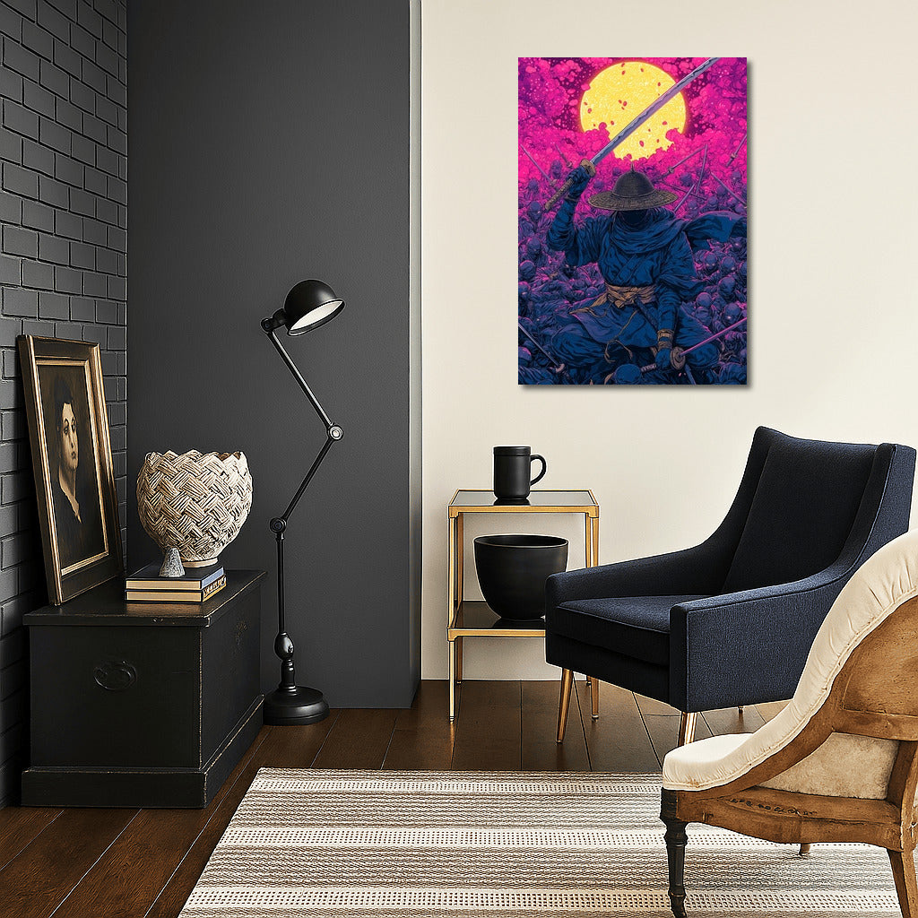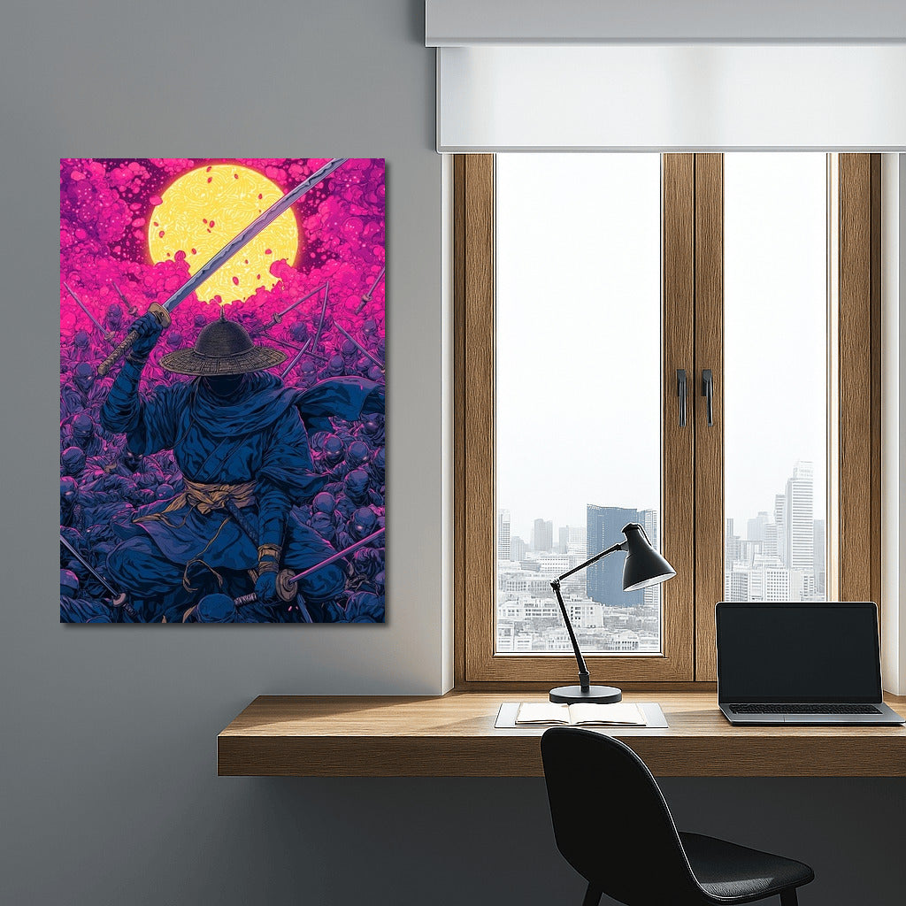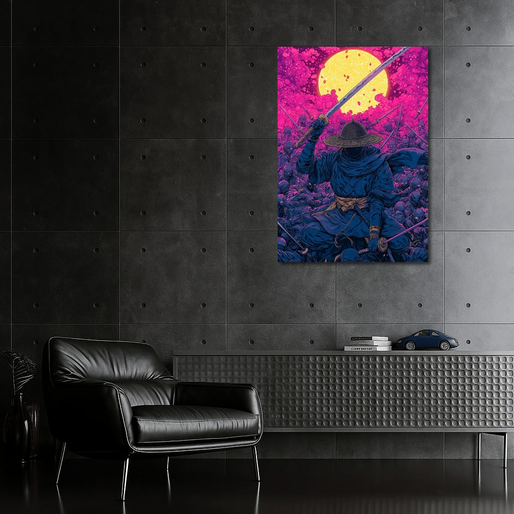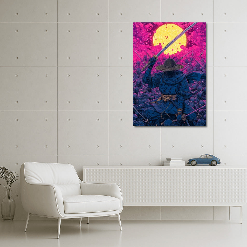 Dive into the world of samurai with this vibrant poster! The bright pink sky and mysterious warrior create an atmosphere of epic adventure. See more from the collection: Samurai Art