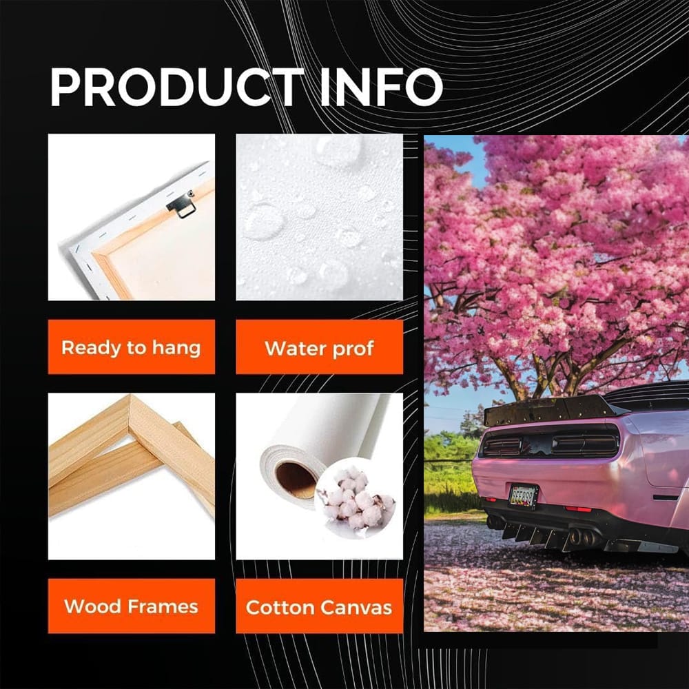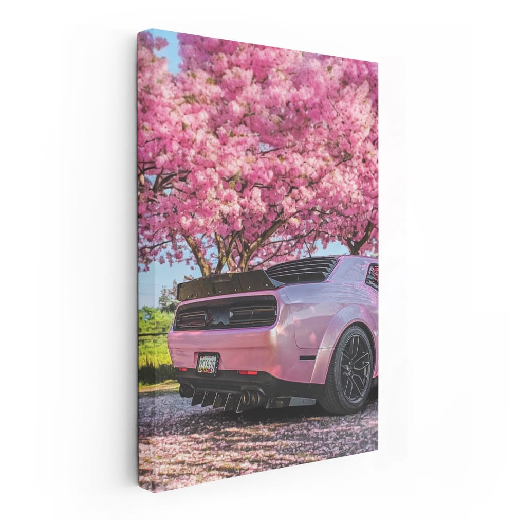 Pink Dodge Amid Sakura Blossoms - Elegant and Bold Wall Art