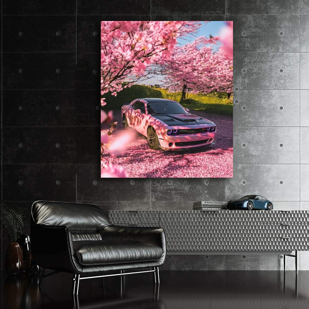 Imagine a poster: a pink Dodge lost in a sea of sakura. This wall art is pure power and grace. This painting is like a breath of fresh air in the world of cars. For true fans of speed and style, this is simply a must-have! See more from the collection: Dodge Art