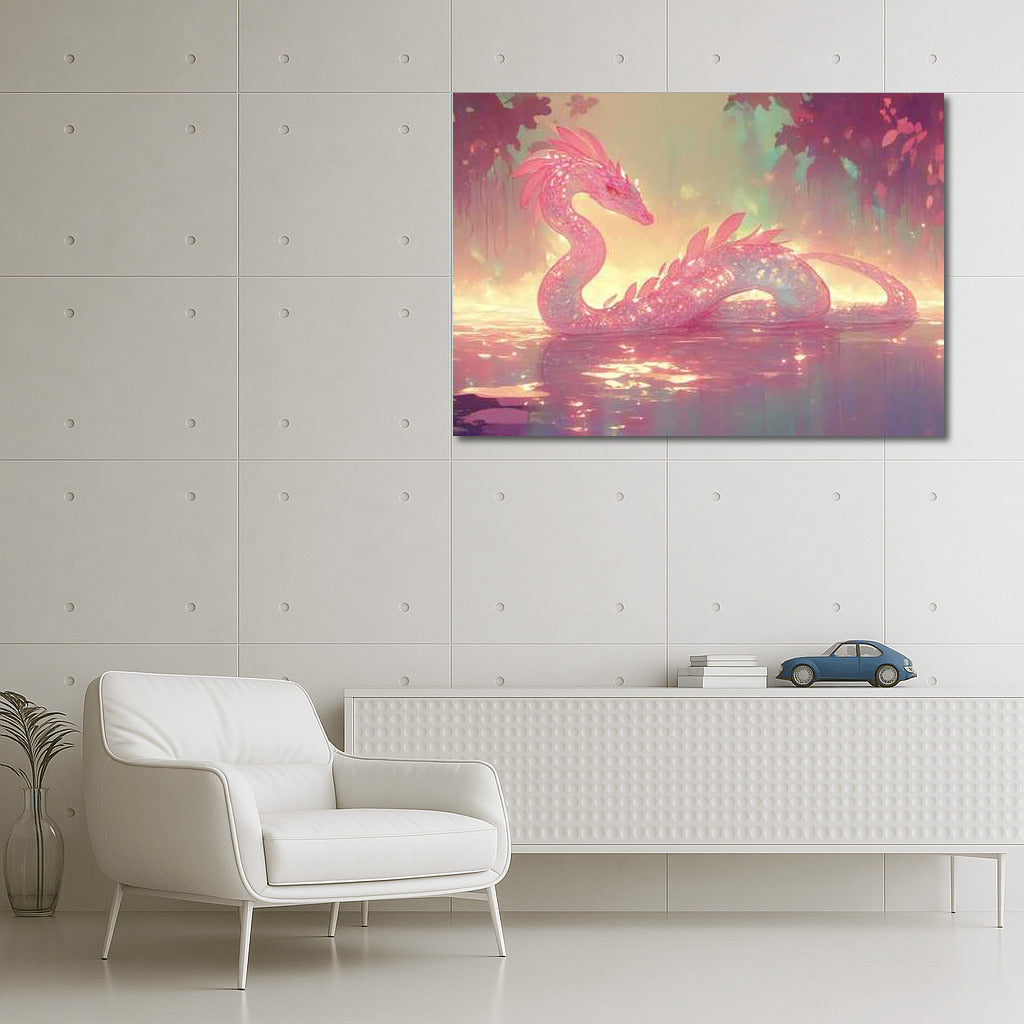 Pink Dragon: Forest Wonderland Fantasy Wall Art