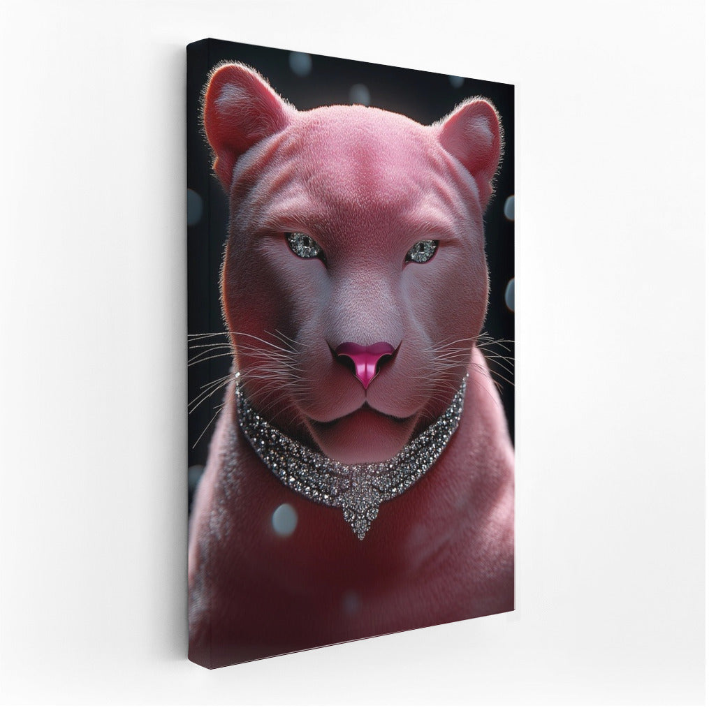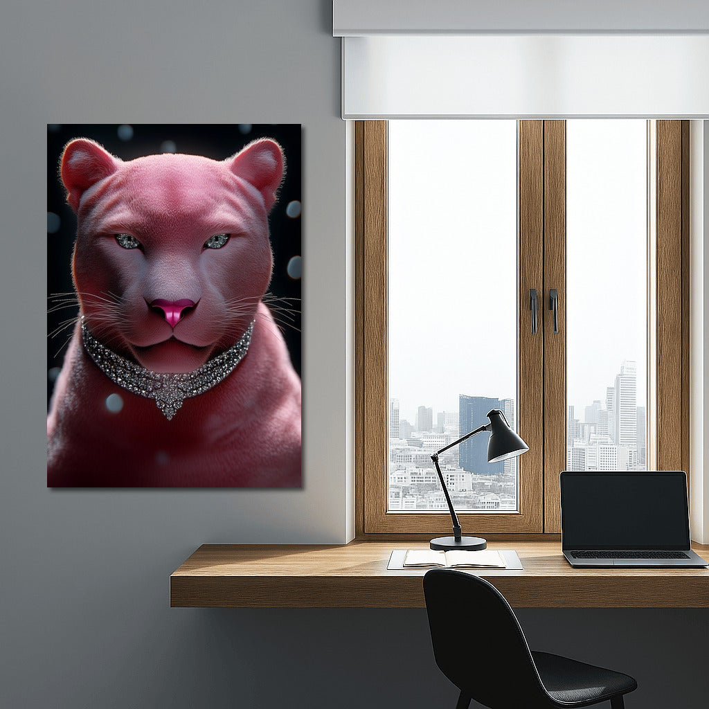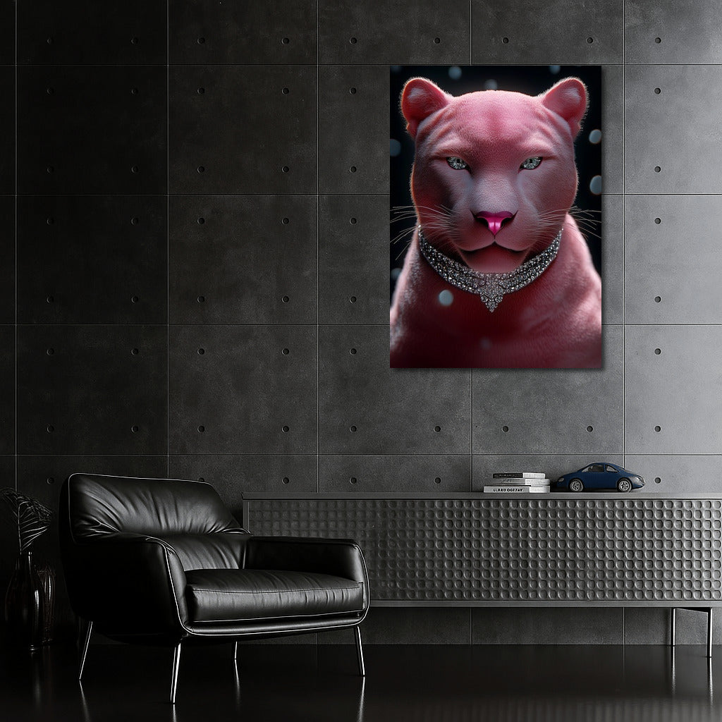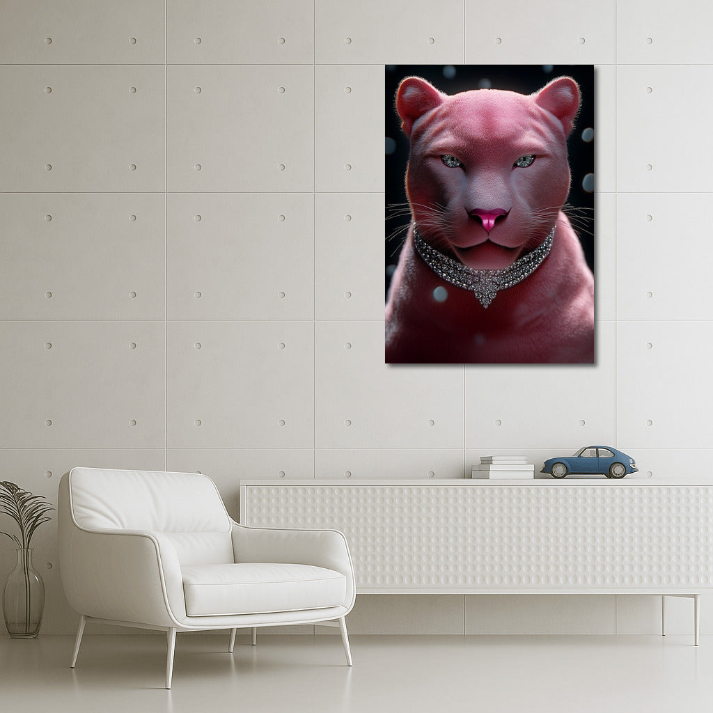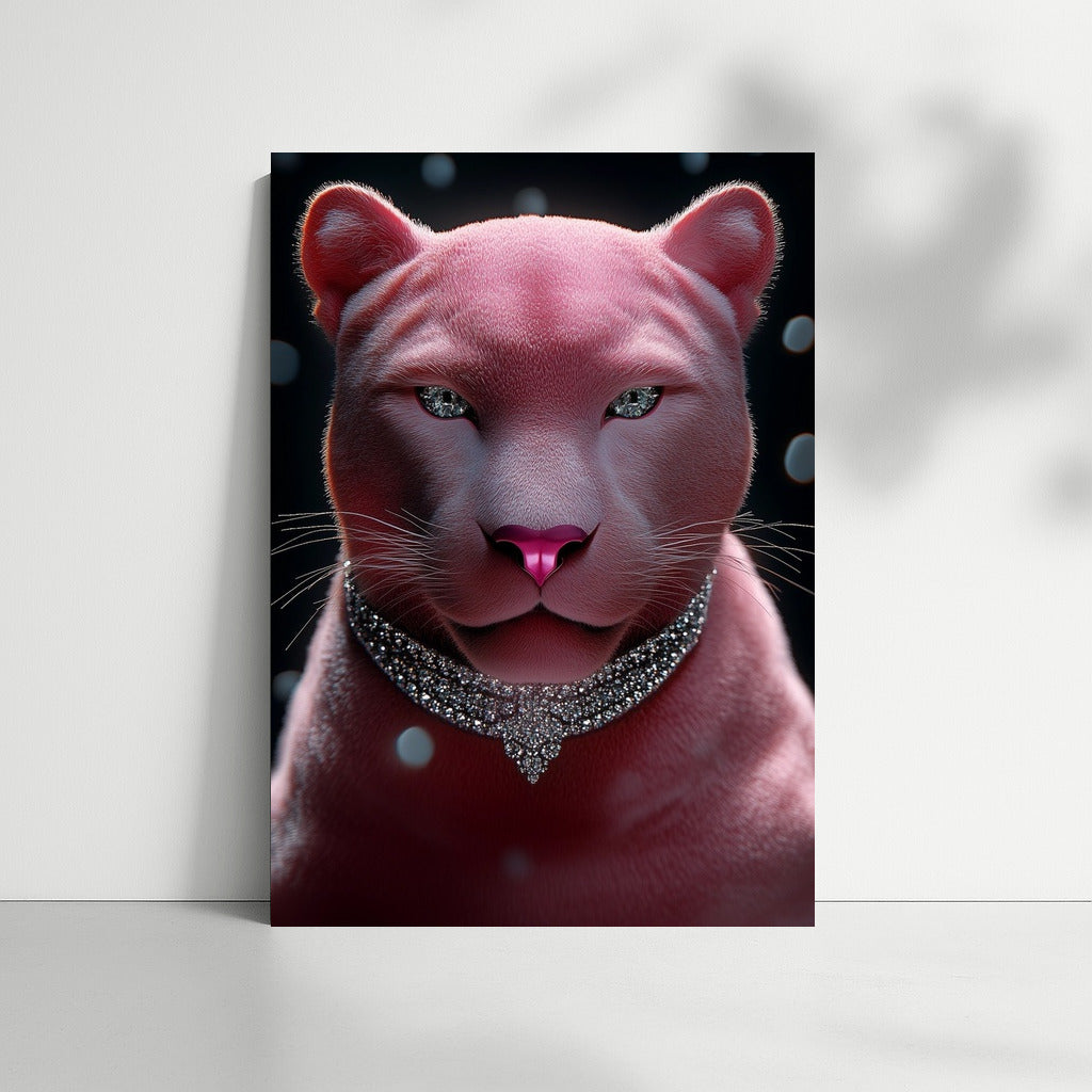 Elegant pink panther in a sparkling necklace. Perfect wall art for those who appreciate style and brightness! See more from the collection: Mixed Wall Art