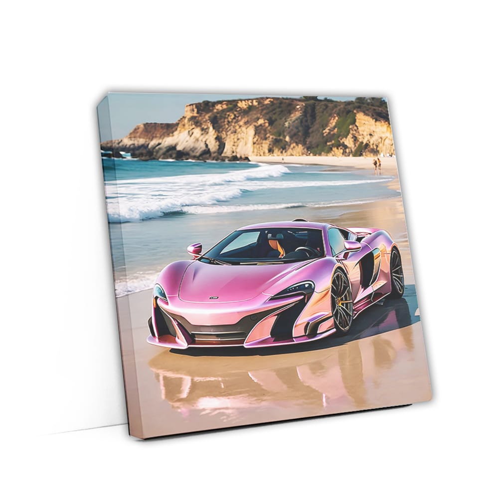 Pink McLaren on Beach - Speed Meets Elegance Wall Art