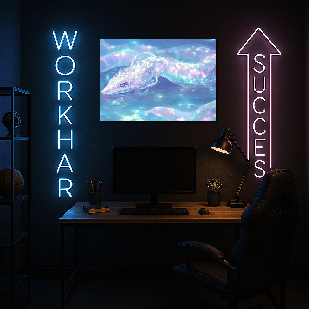Dive into a fantasy world with a poster of a mysterious creature, sparkling in pink shades. Wall art that brings dreams to life. See more from the collection: Fantasy Art