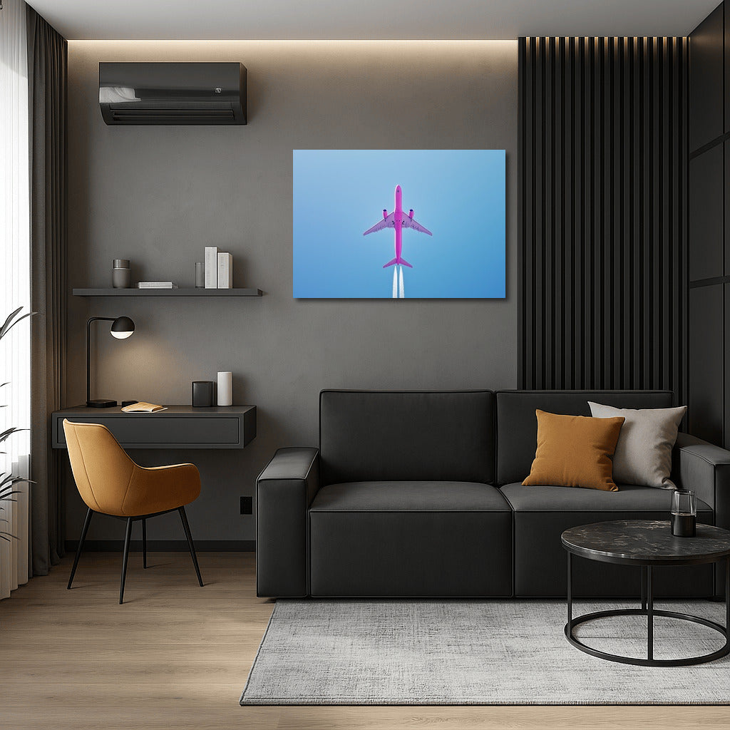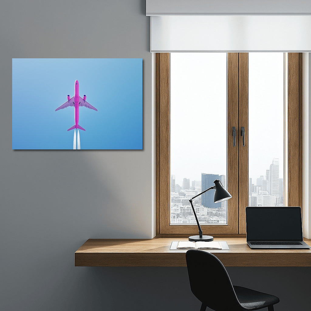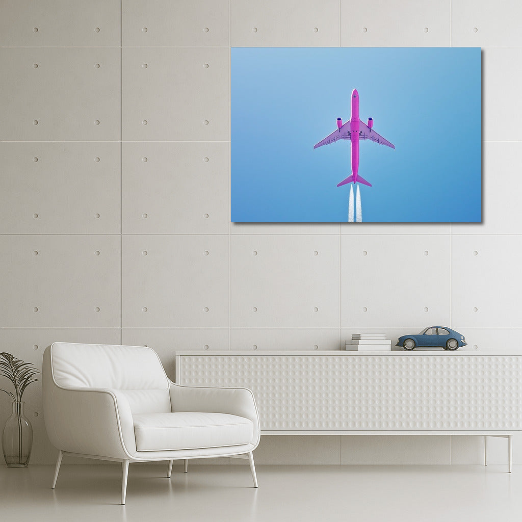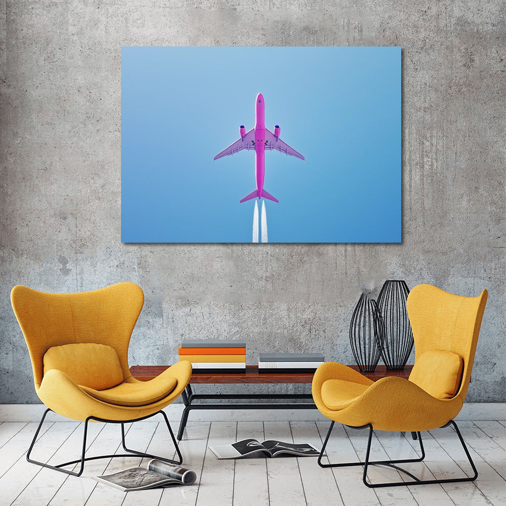 The pink airplane soaring into the sky in this poster inspires you to dream and fly. Perfect wall art for the brave! See more from the collection: Mixed Wall Art
