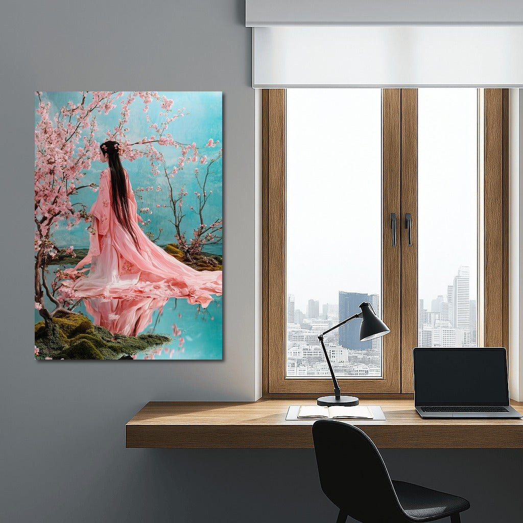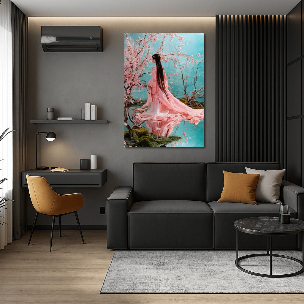 Delicate wall art: a figure in pink is surrounded by flowering trees, adding harmony and grace to your interior. See more from the collection: Country Art