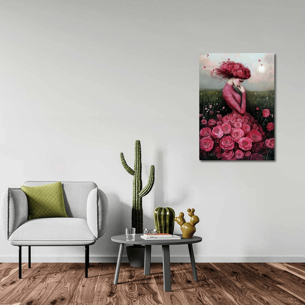 Romantic wall art featuring a graceful figure wrapped in roses. A perfect poster to create a dreamy atmosphere. See more from the collection: Mixed Wall Art