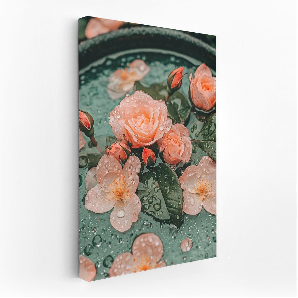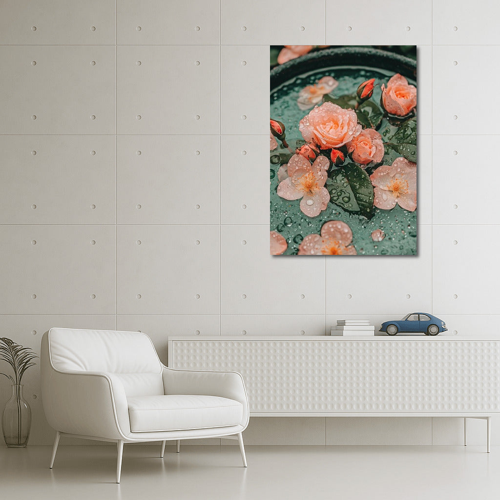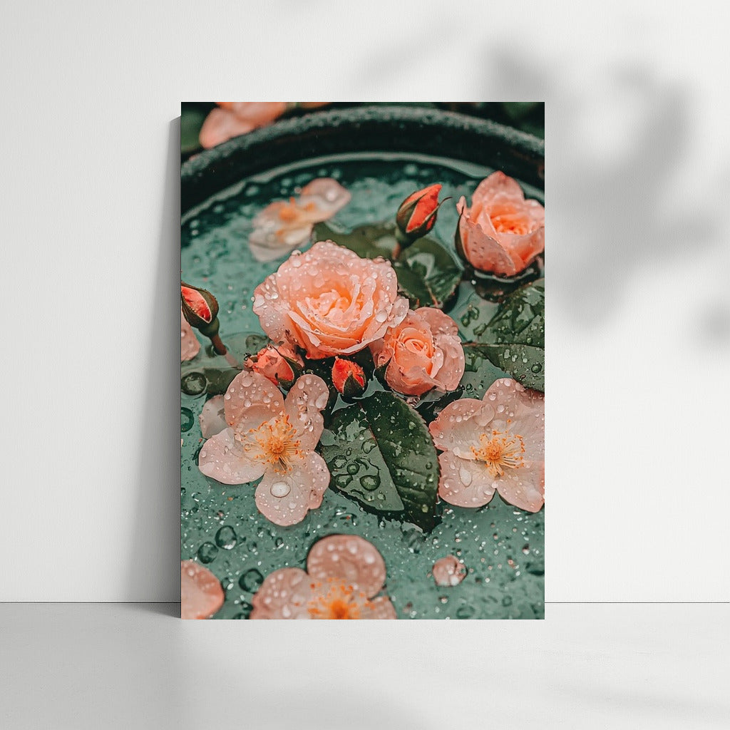 Immerse yourself in a world of tranquility with this painting: delicate roses on water will become an exquisite accent of your wall art. See more from the collection: Pink Flowers Art