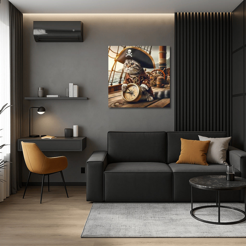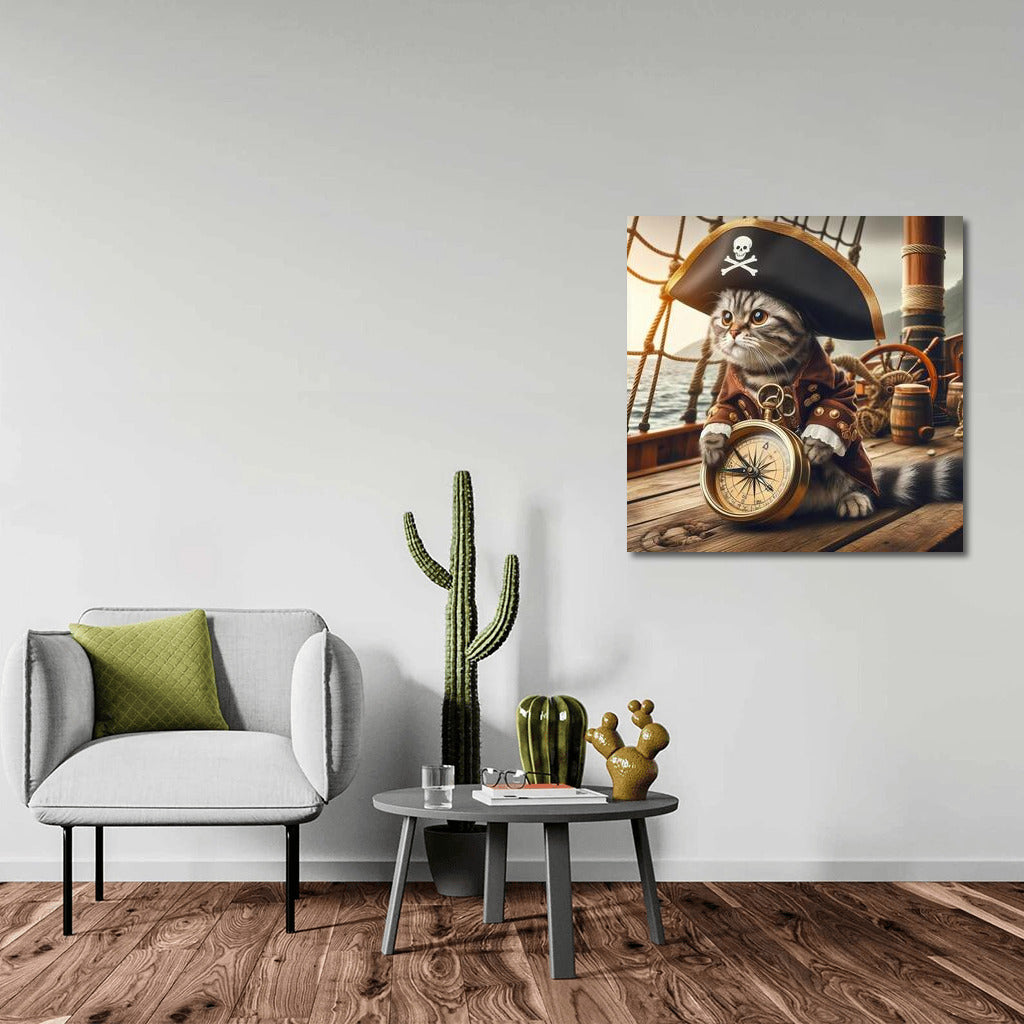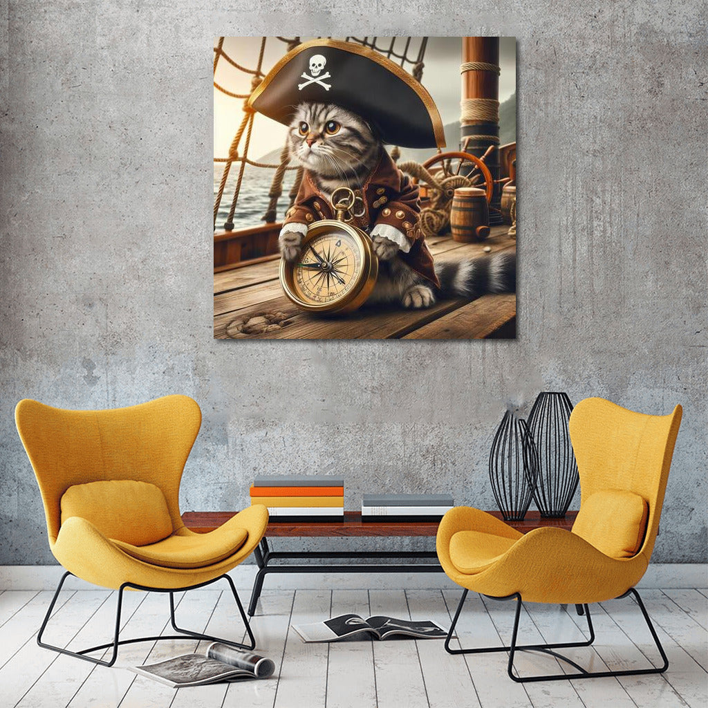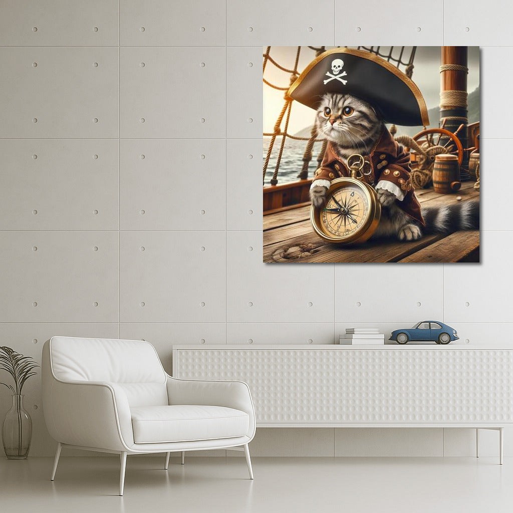 Pirate Cat with a Compass: Adventures in the Style of Pirates of the Caribbean Wall Art