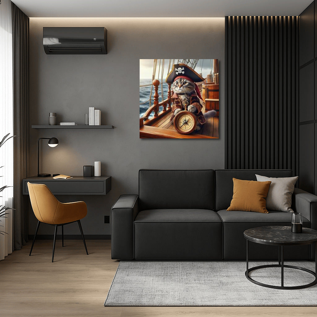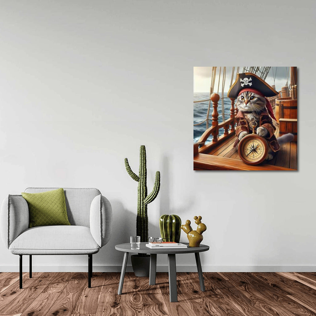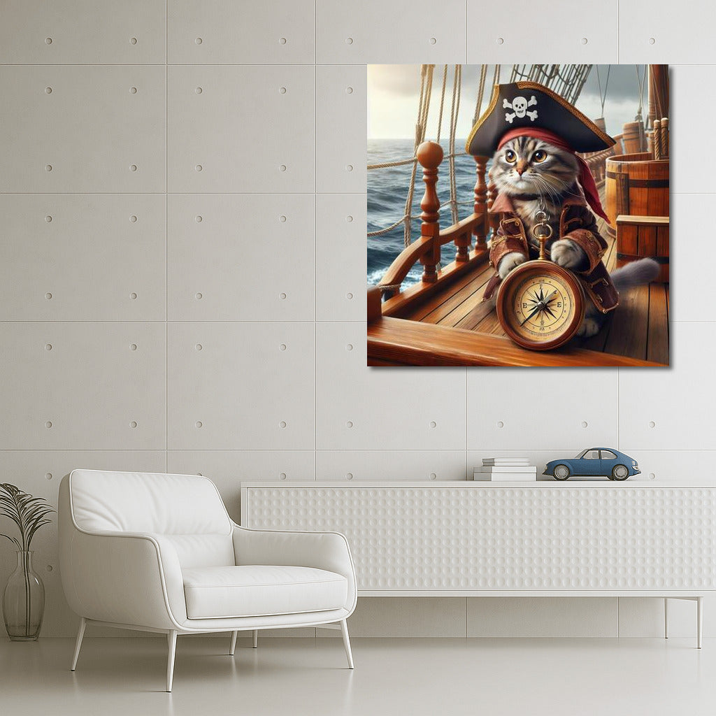 Pirate Cat with Compass: Sea Adventures in the Style of 'Pirates of the Caribbean' Wall Art