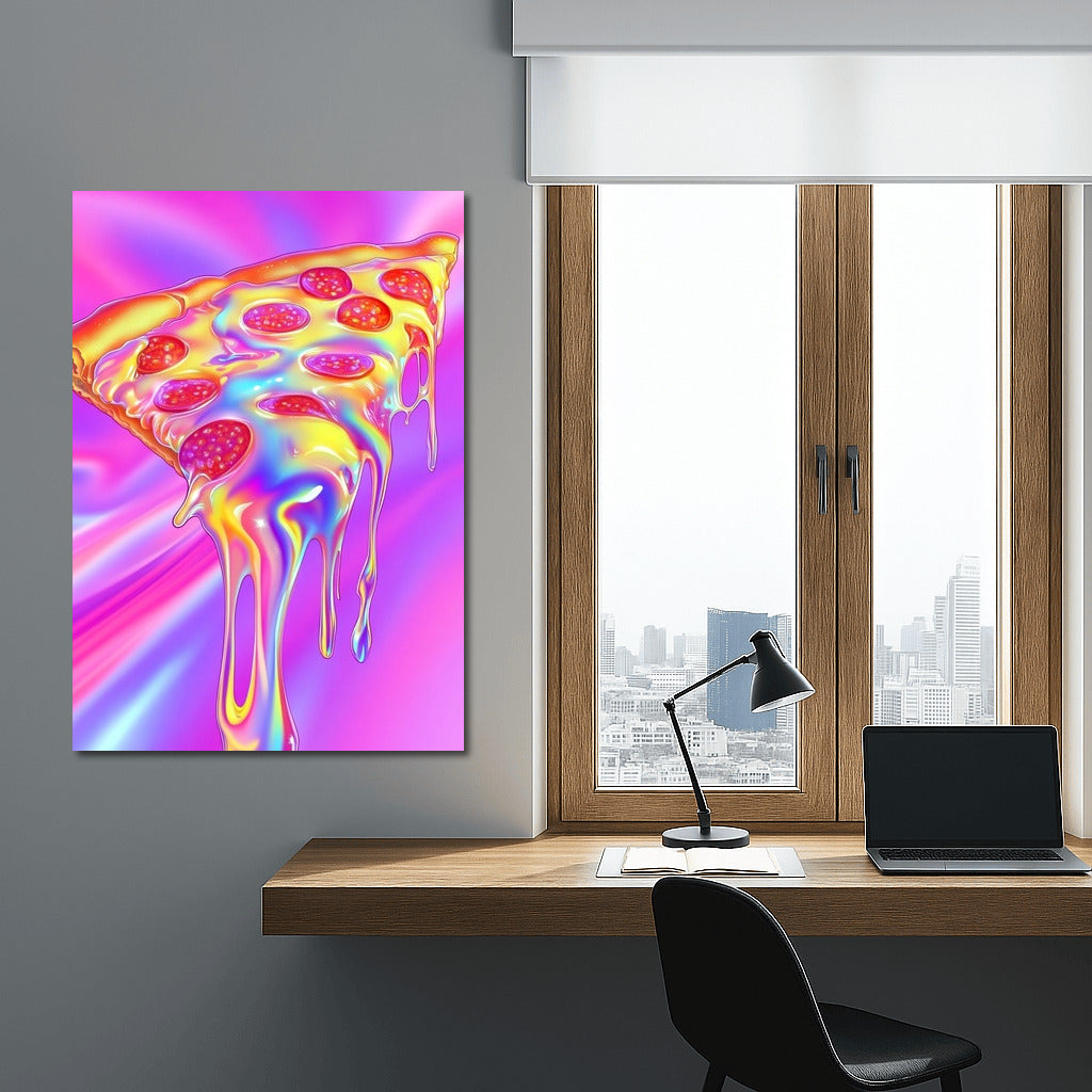 A juicy poster with a bright pizza. Art that awakens the appetite and adds a tasty note to the interior! See more from the collection: Food Art