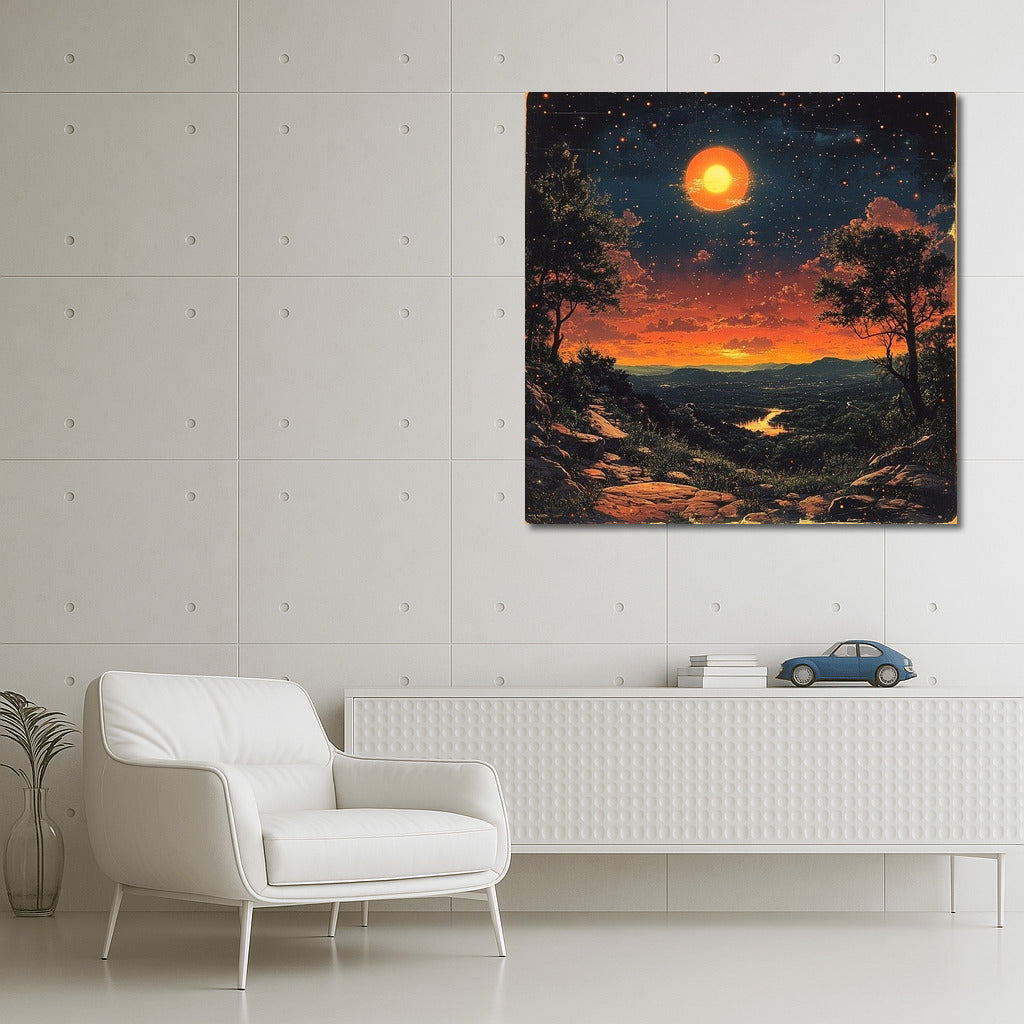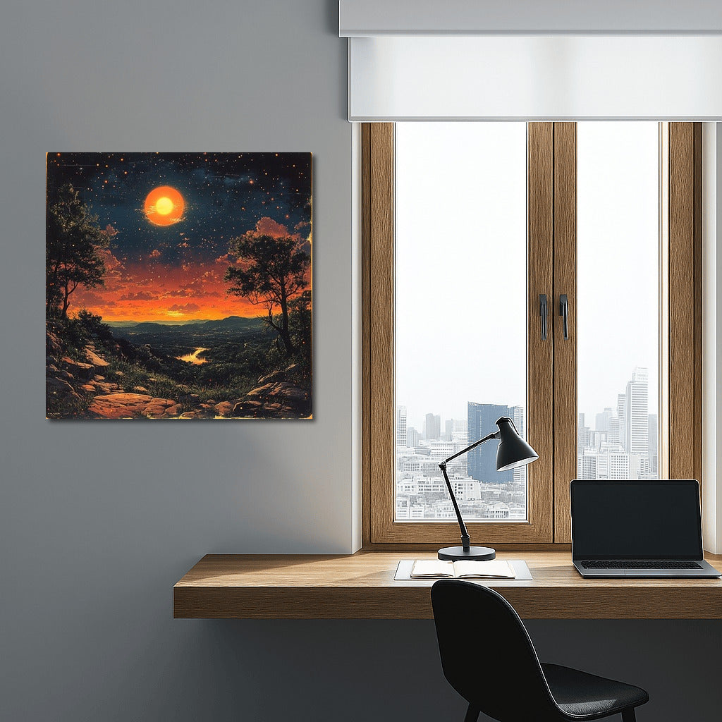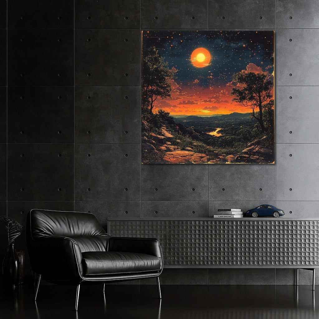 Poster with a magical sunset where the sky and the earth merge into the poetry of light. Wall art to create coziness and dreams. ✨ See more from the collection: Nature & Landscapes Art