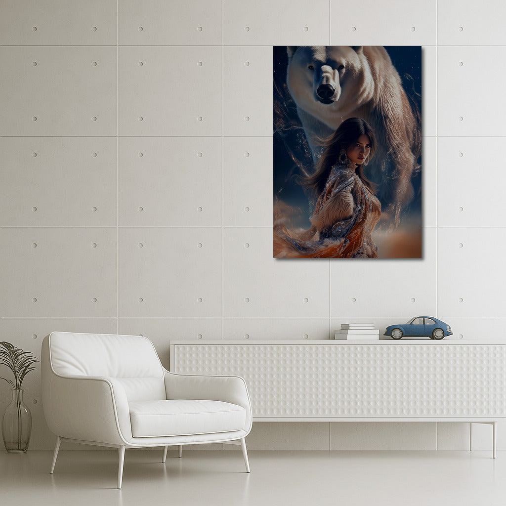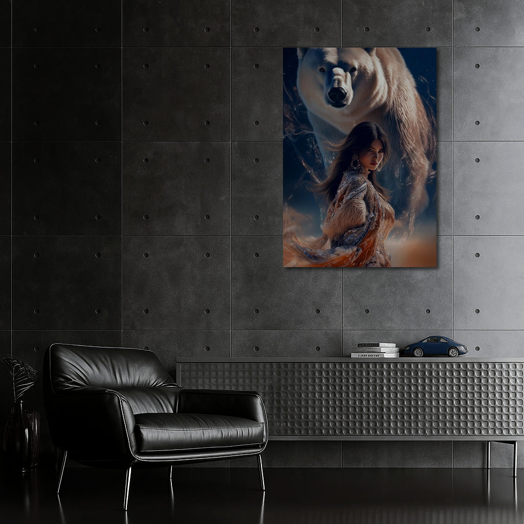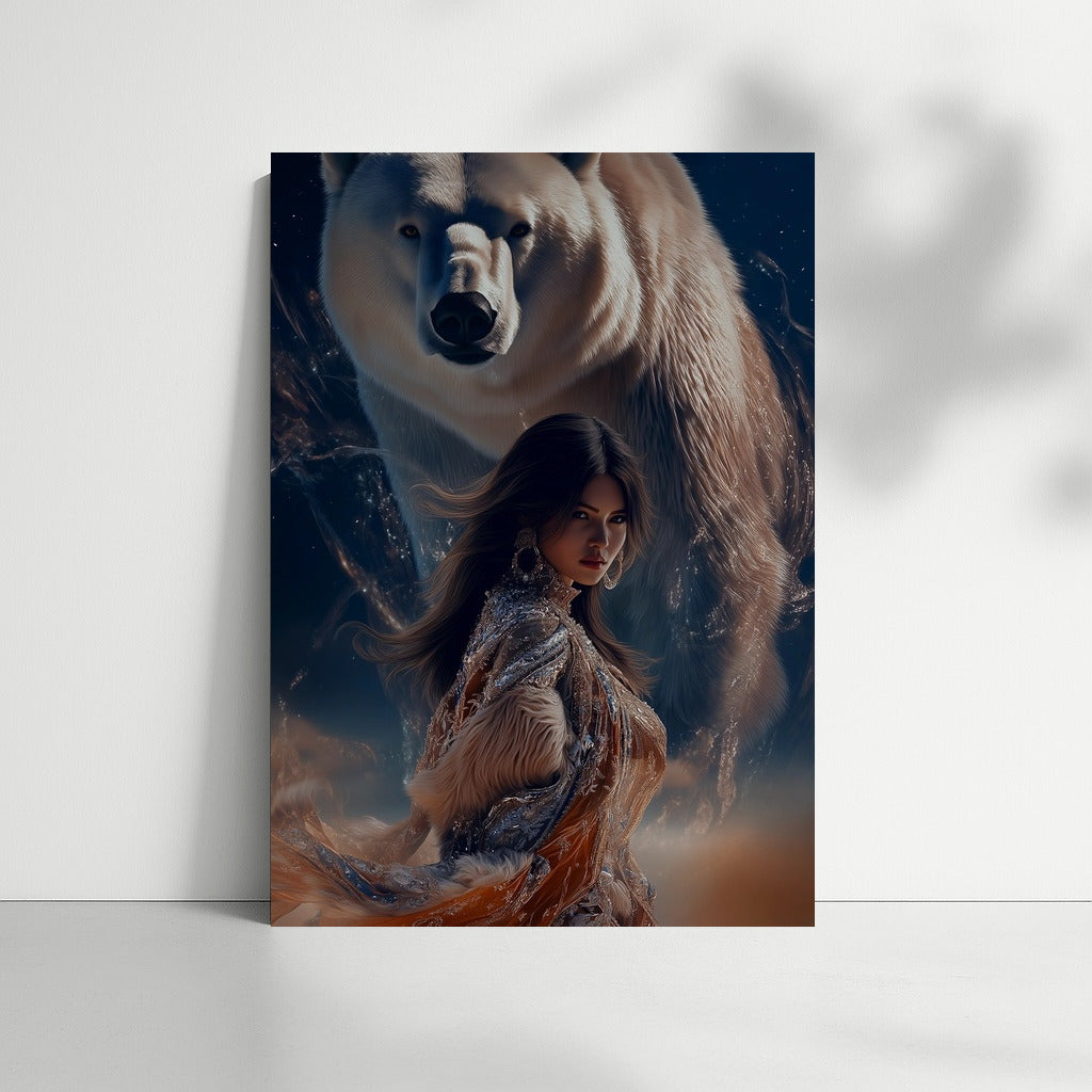 Magic of meeting: girl and polar bear in the dance of the night. This poster inspires and will add mystery to your home. See more from the collection: Mixed Wall Art