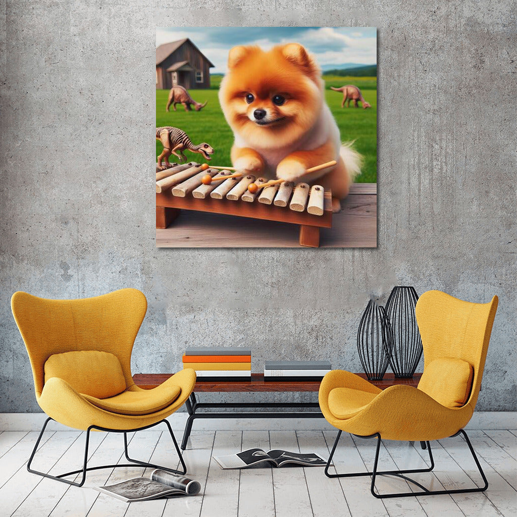 Pomeranian and Dinosaur Bone Xylophone: Musical Adventures Wall Art