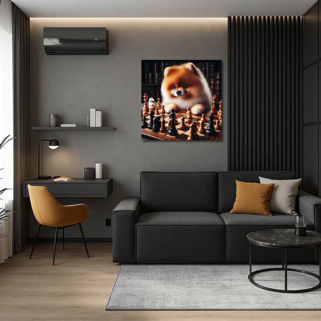 Pomeranian Chess Duel: Live Pieces in Battle Wall Art