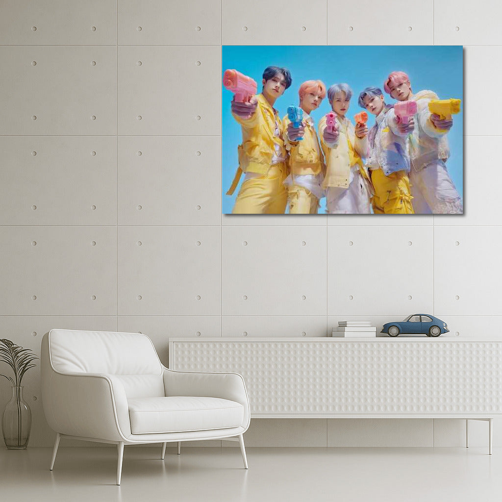 Pop confetti and vibrant imagery: wall art that embodies K Pop and Korean culture in every stroke and color. See more from the collection: K-pop & Korean culture Art