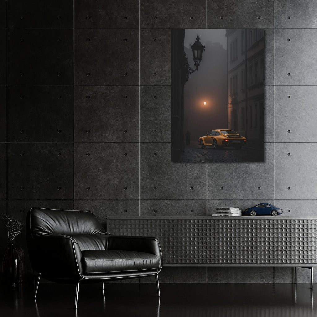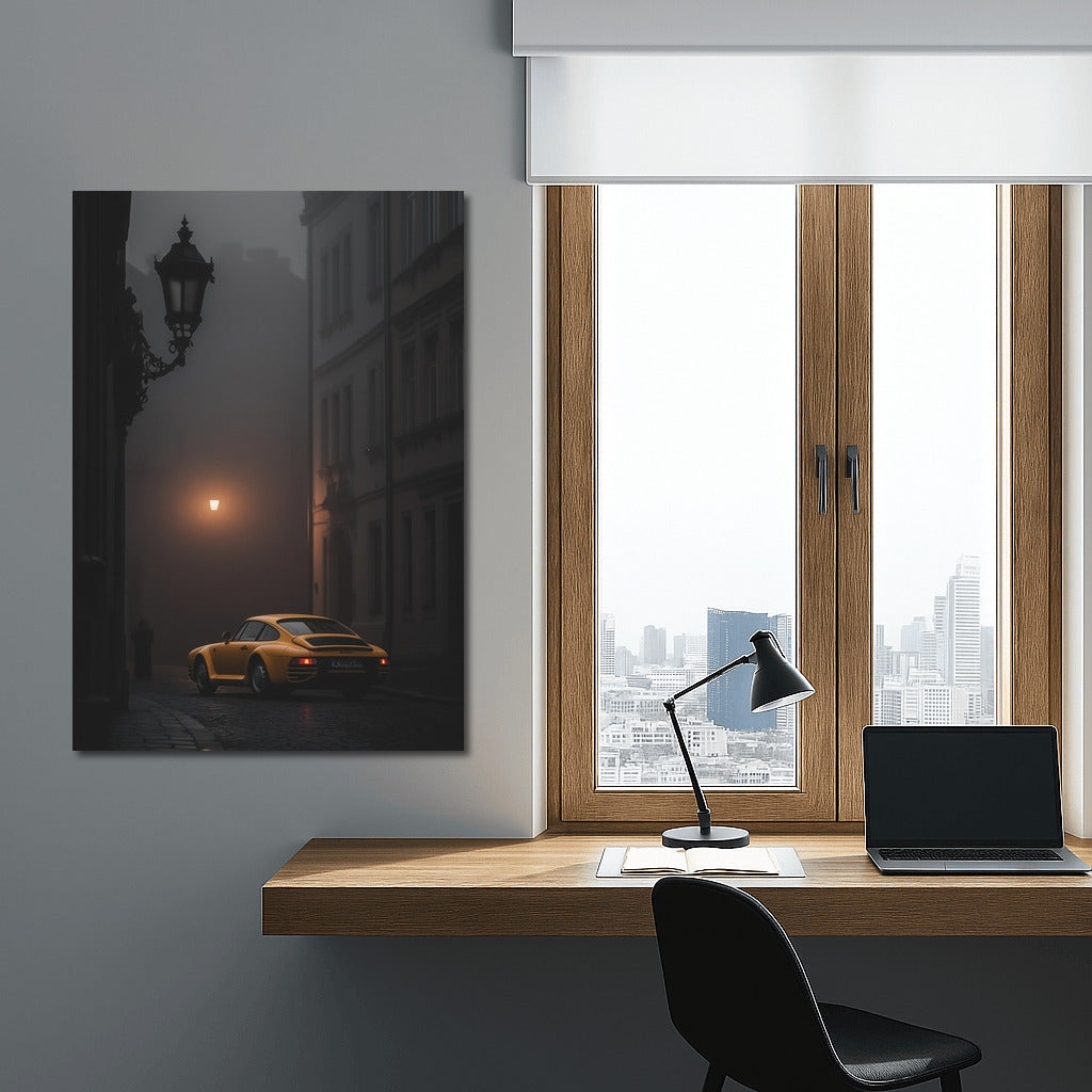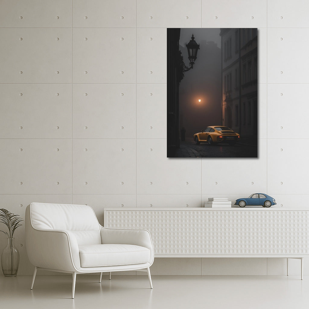 Evening city, fog and mysterious Porsche 911. The poster will add style and atmosphere to your walls. Ideal for car lovers! See more from the collection: Porsche 911 Art