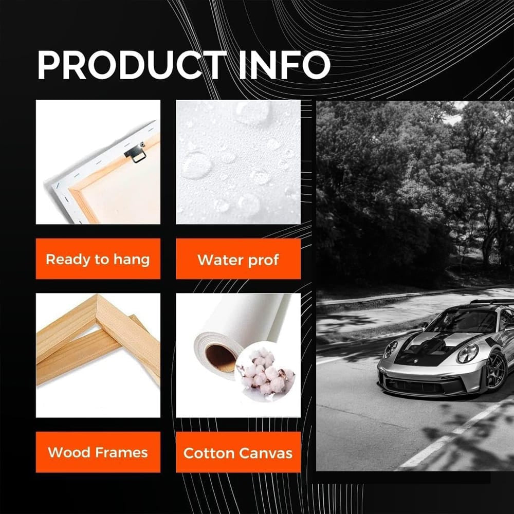 Hey, bro, look at this poster! Porsche GT3 RS in all its glory. Wall art for true car fans. A painting where every stroke screams about speed and power. Black and white aggression that makes the heart beat faster. This is not just decoration, but a whole philosophy of speed! See more from the collection: Porsche Art