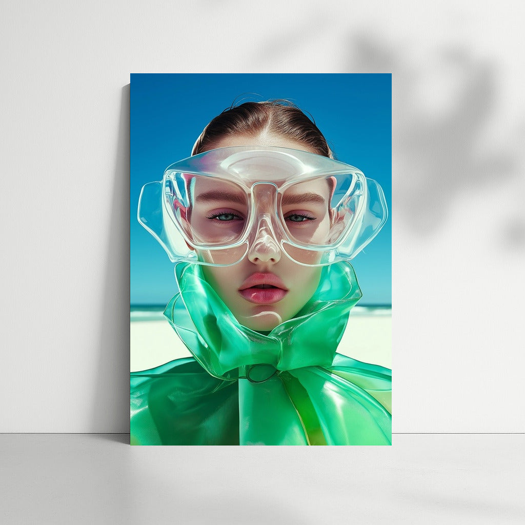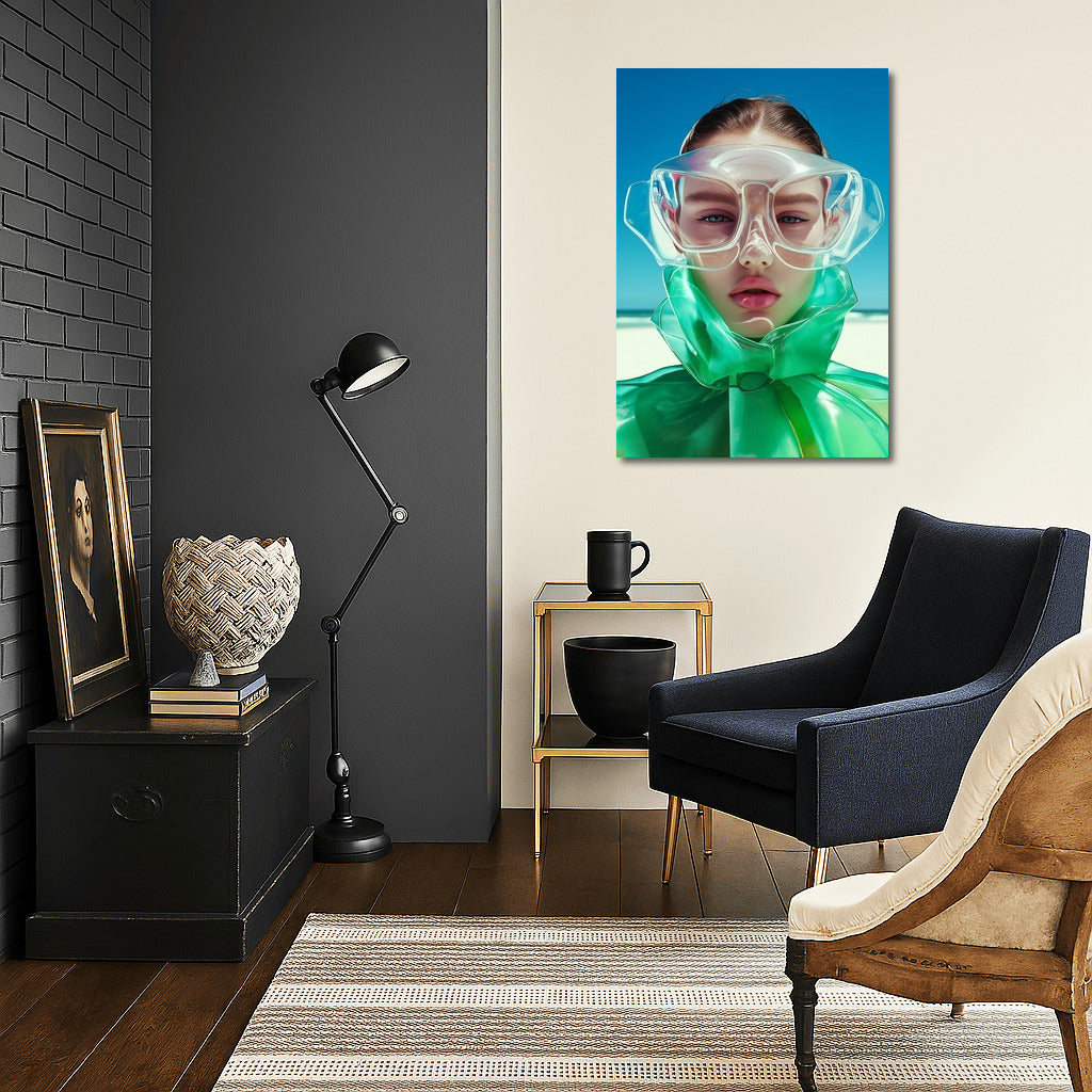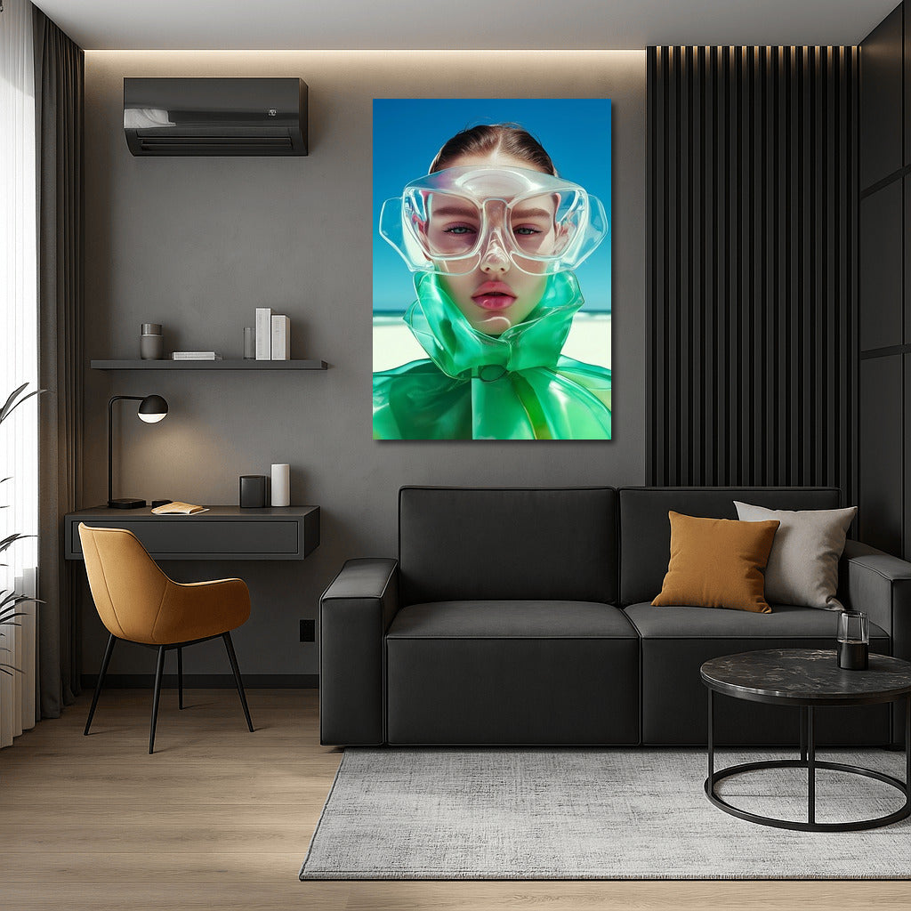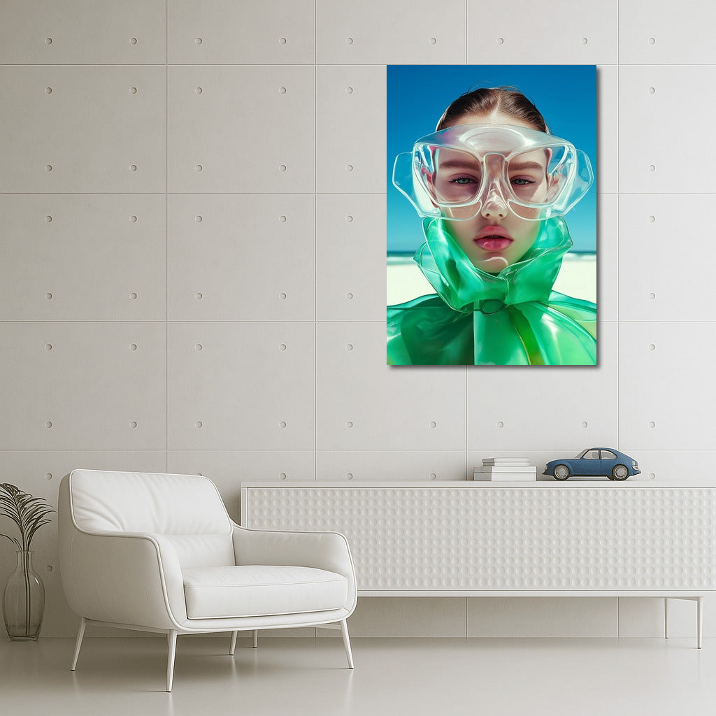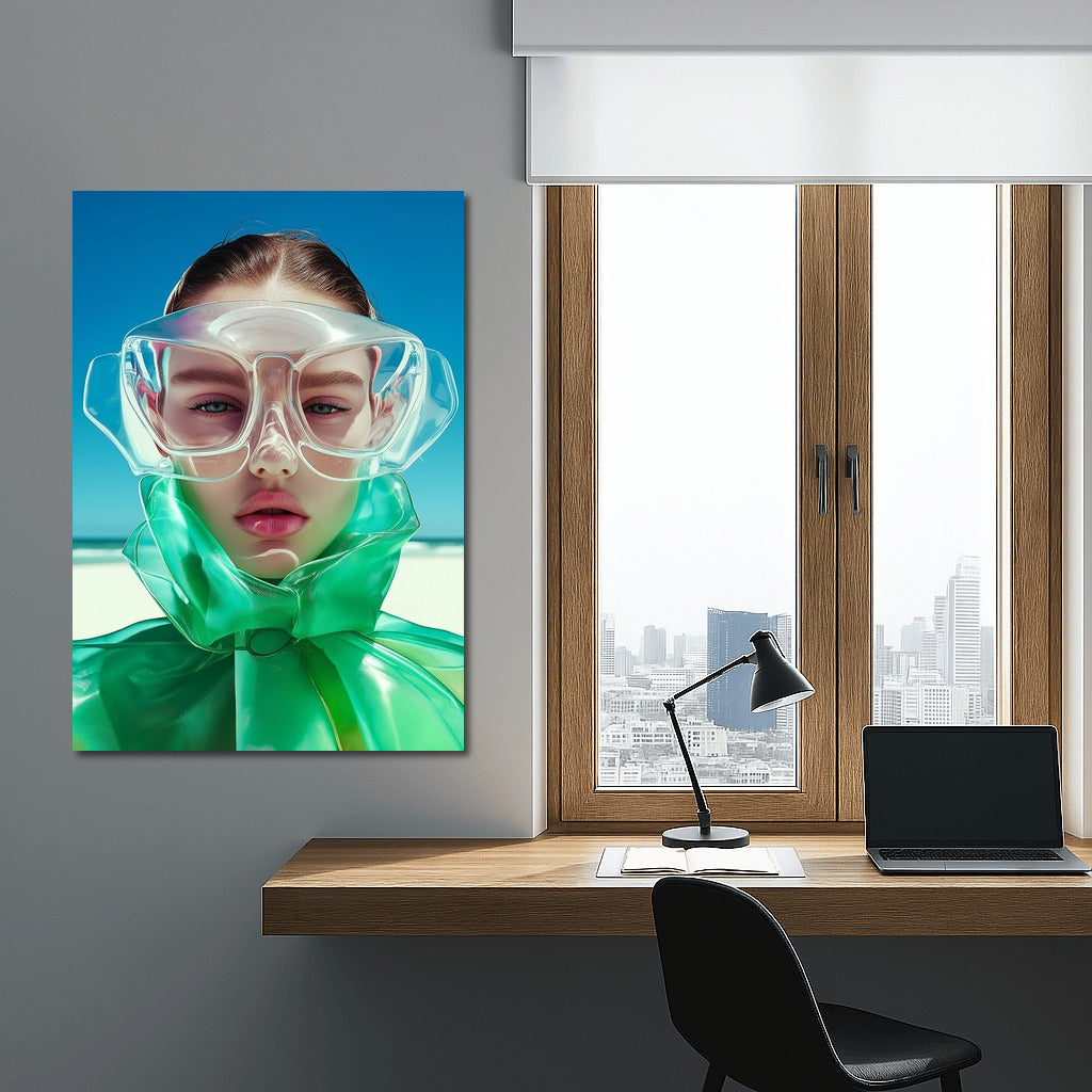 Take a step into the future with this vibrant painting: neutral imagery and futuristic style create a unique wall art. See more from the collection: Wall Art with Women