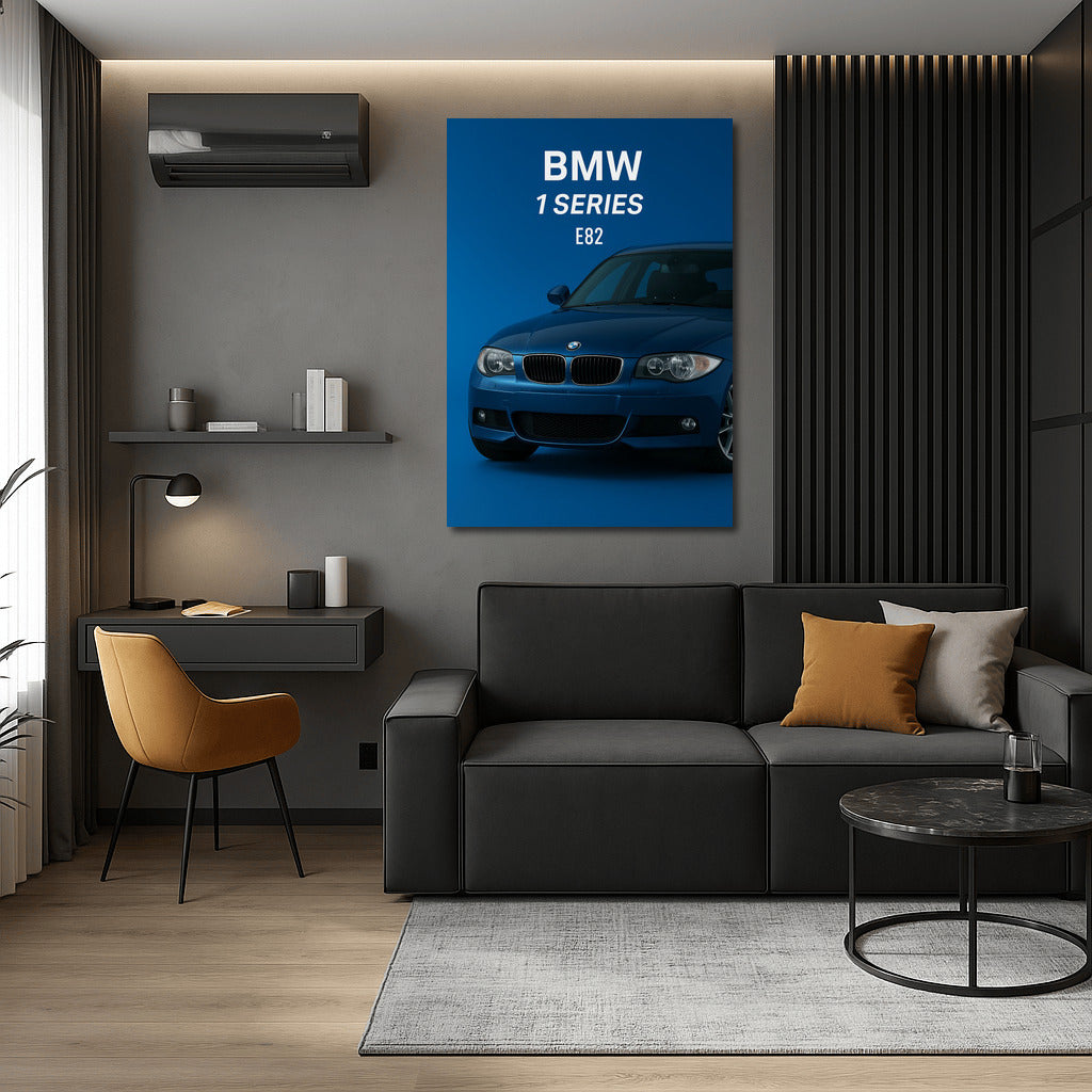 The poster impresses with the power of the BMW 1 Series E82 Coupe. Wall art for true connoisseurs of classic cars and style. See more from the collection: BMW 1 Series Art