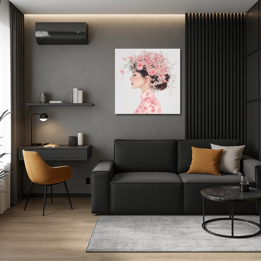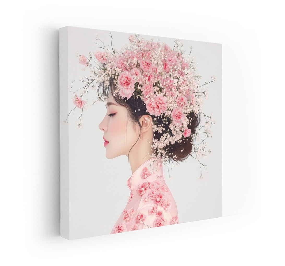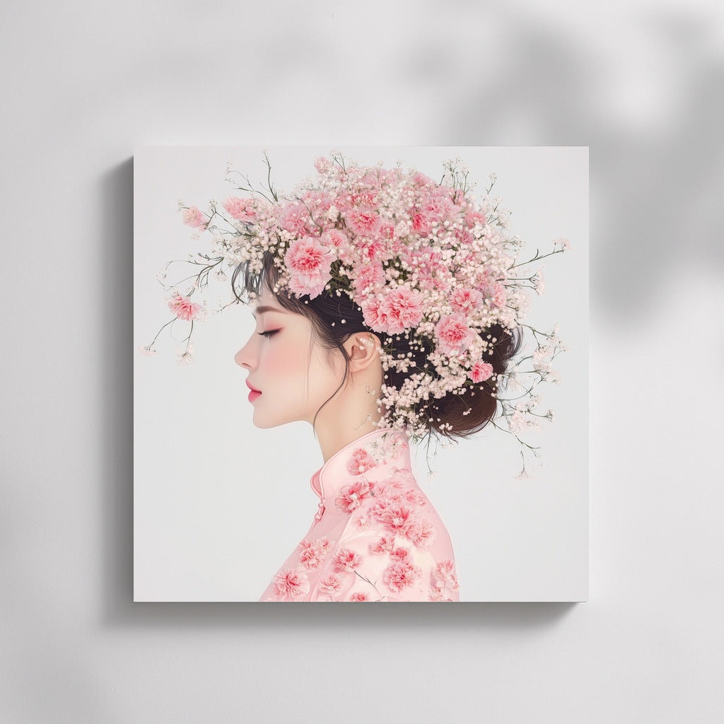 Floral Poster: A delicate profile framed by pink flowers. Perfect wall art to create a dreamy atmosphere. See more from the collection: Wall Art with Women