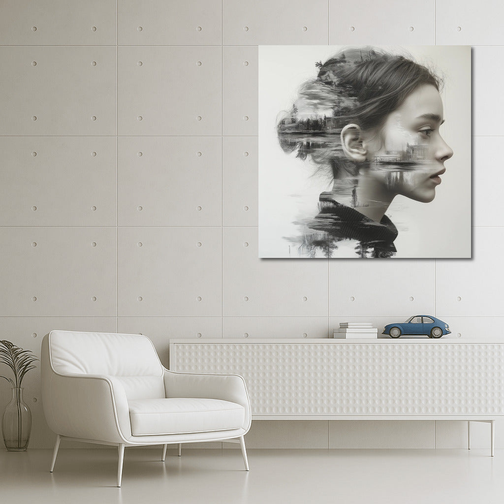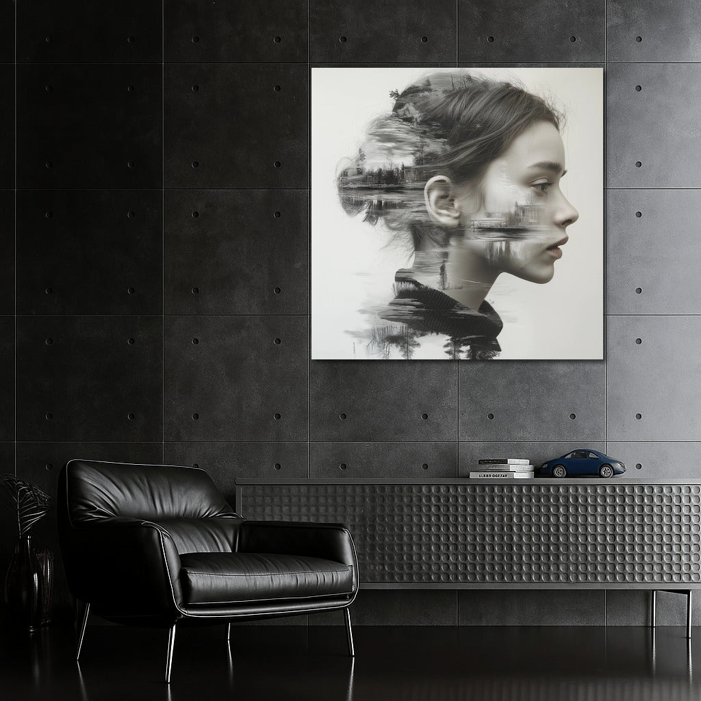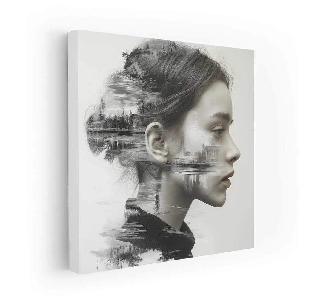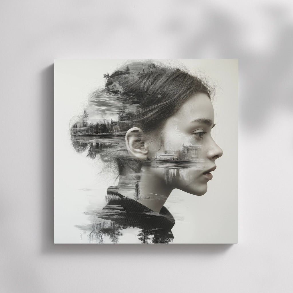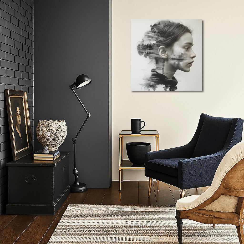 Elegant poster: mysterious profile with natural landscapes. Wall art for lovers of harmony and nature. See more from the collection: Mixed Wall Art