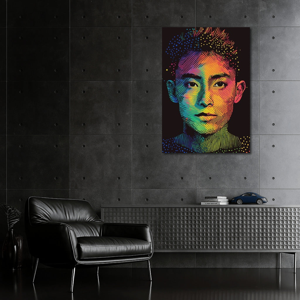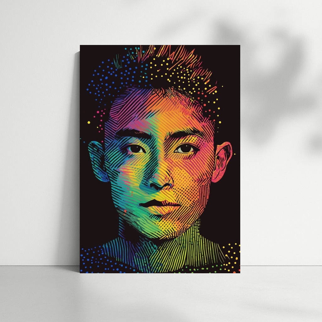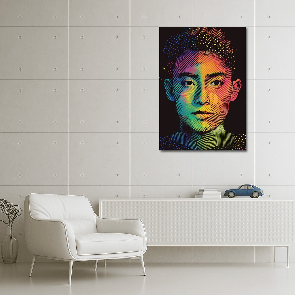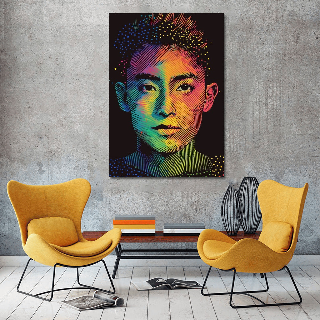 A vibrant abstract portrait poster where colors and lines create a unique contemporary wall art atmosphere. See more from the collection: Mixed Wall Art