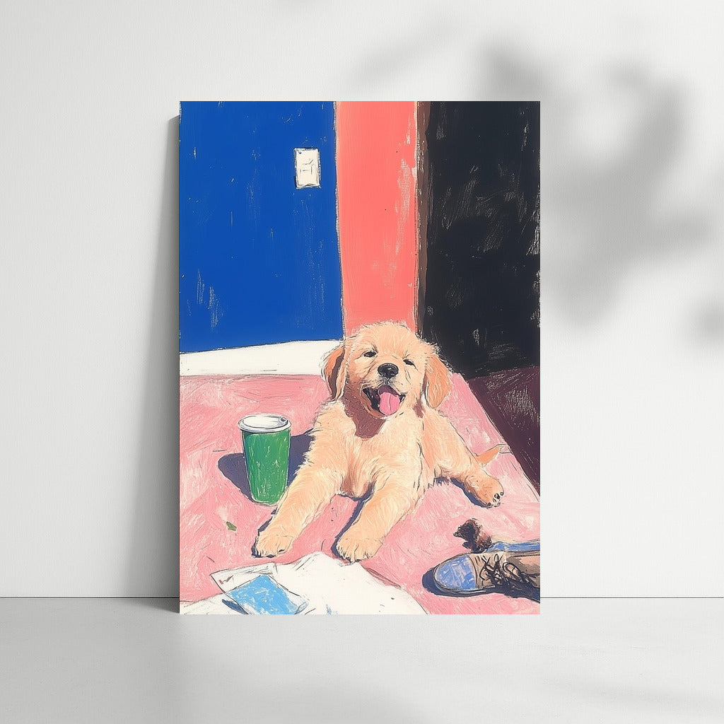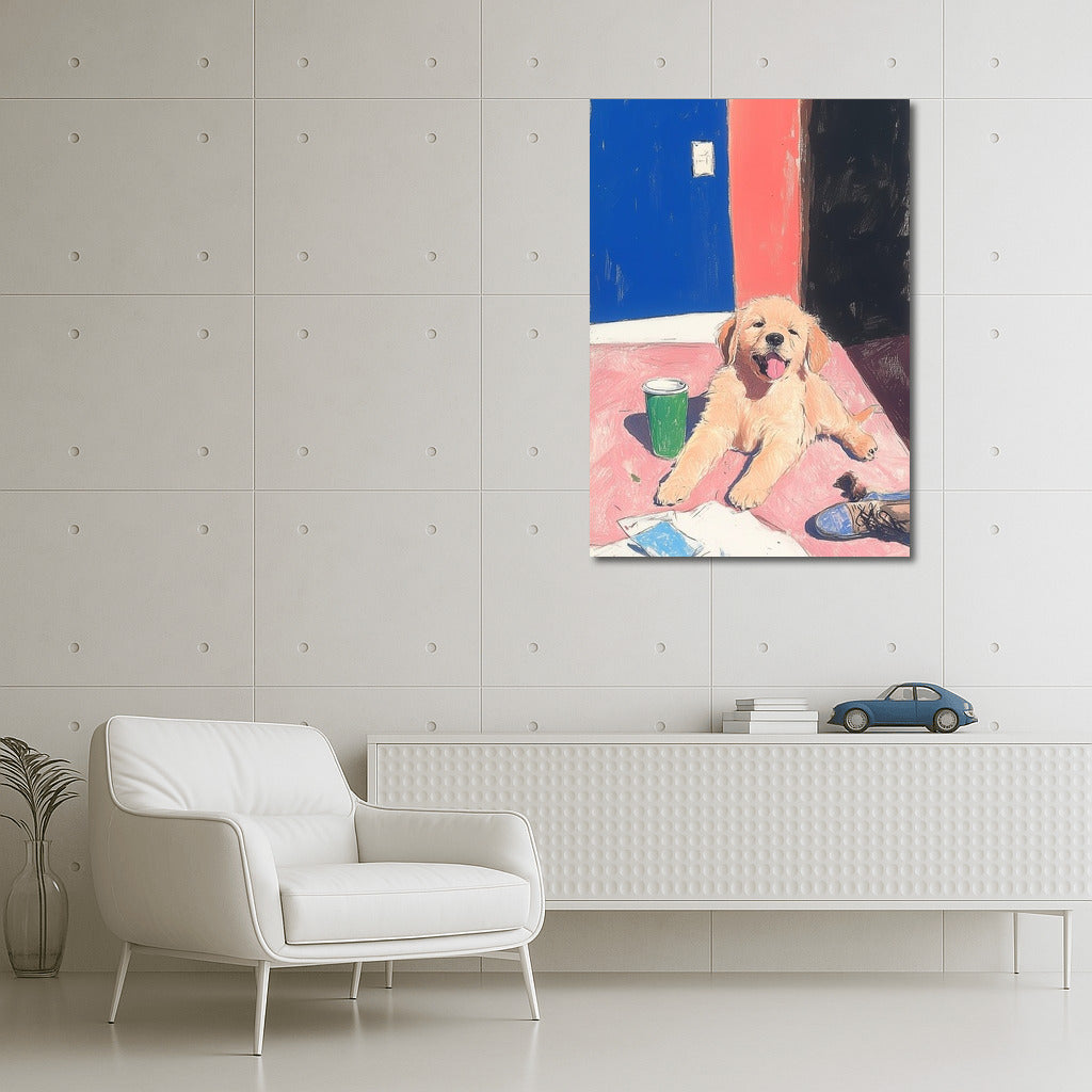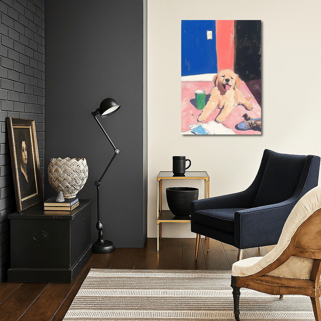 A radiant puppy painting that brings warmth to any space. Add charm to your wall art! See more from the collection: Animals Art