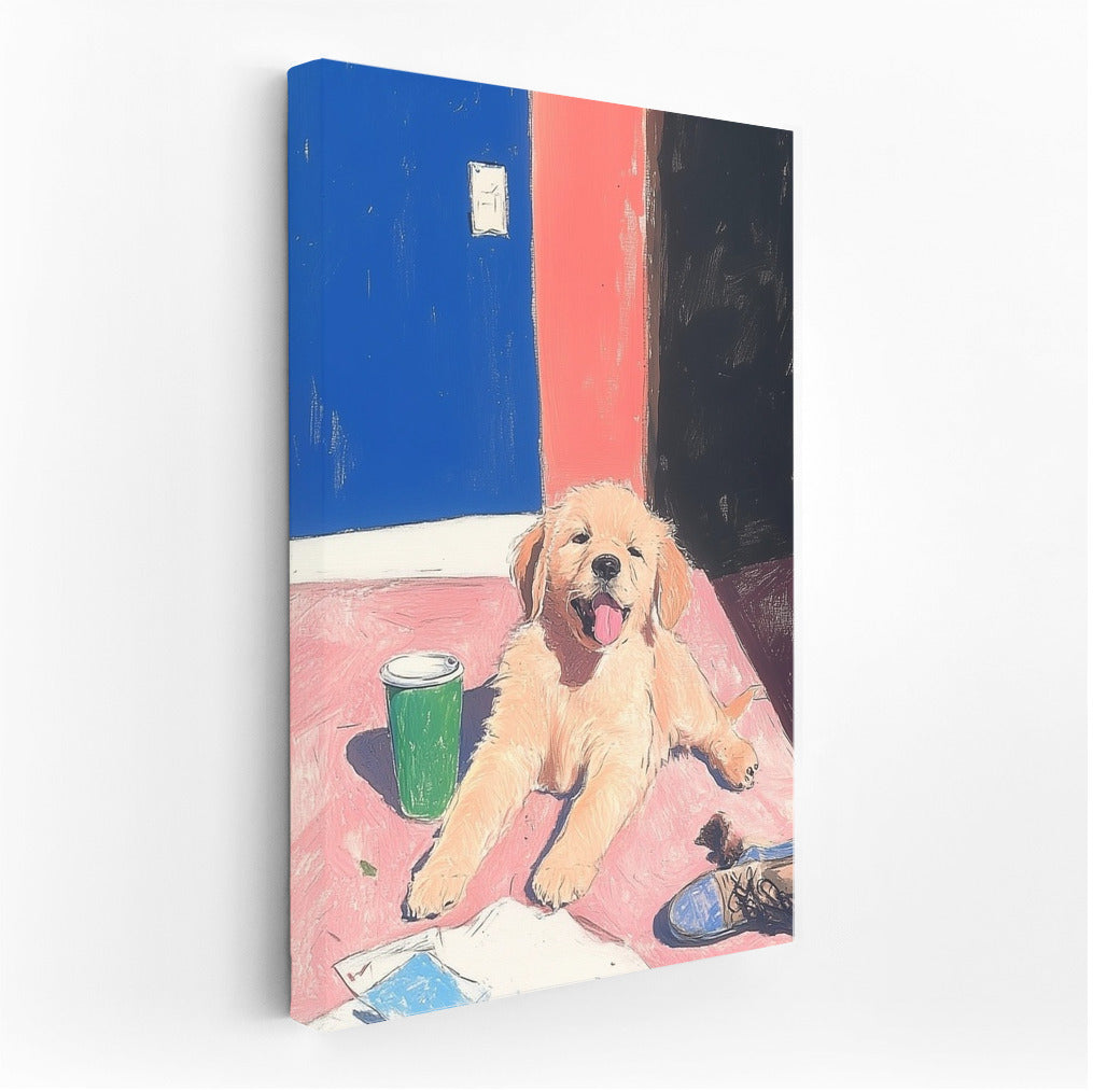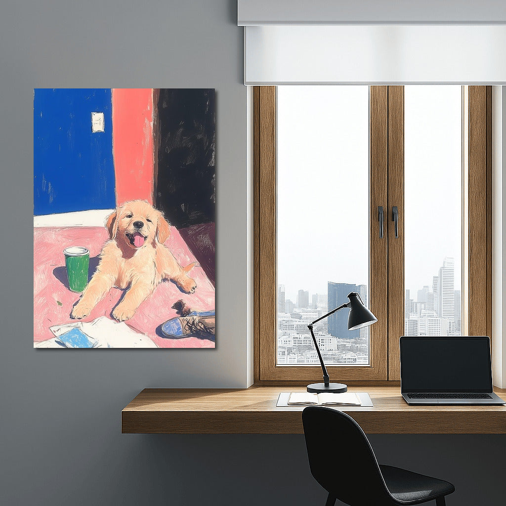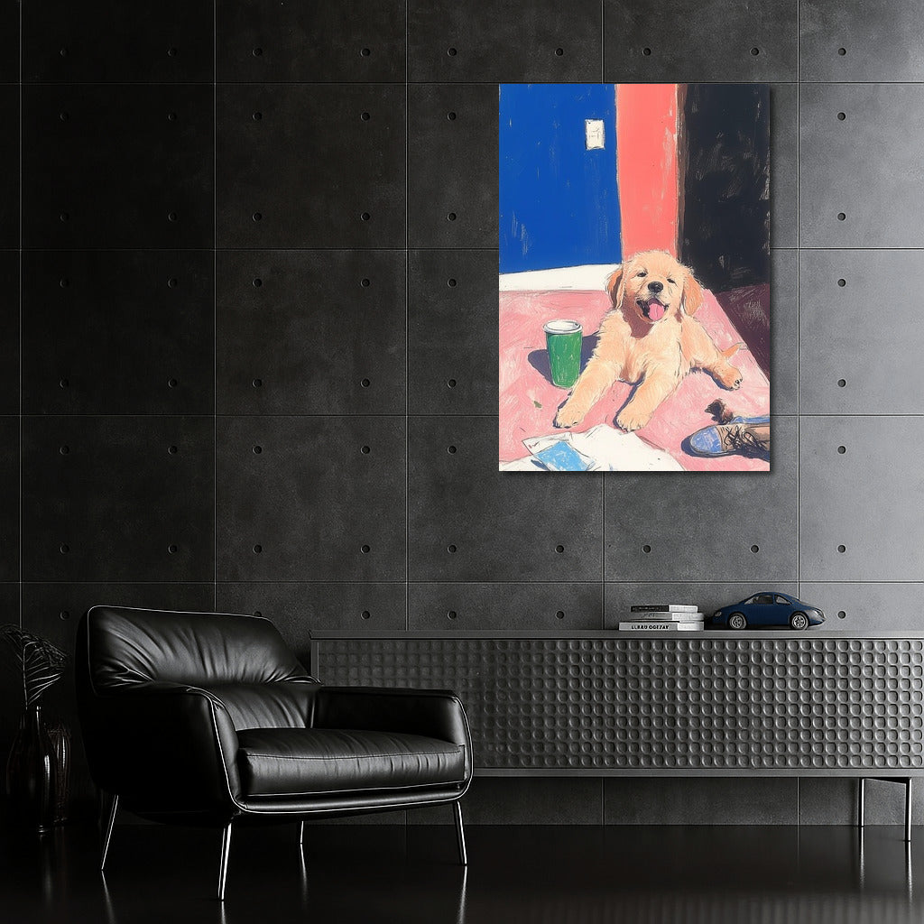 A radiant puppy painting that brings warmth to any space. Add charm to your wall art! See more from the collection: Animals Art