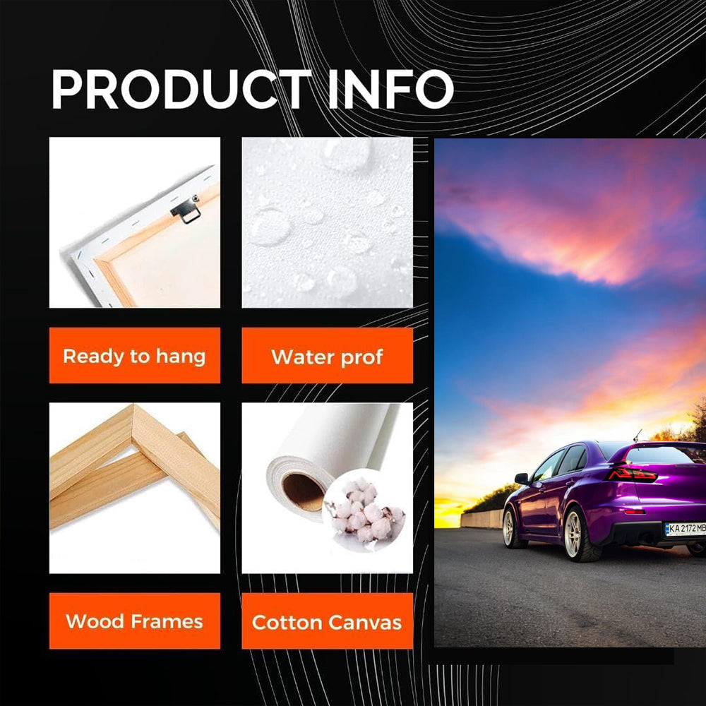 Purple Mitsubishi Lancer at Sunset - Icon of Speed and Style Wall Art