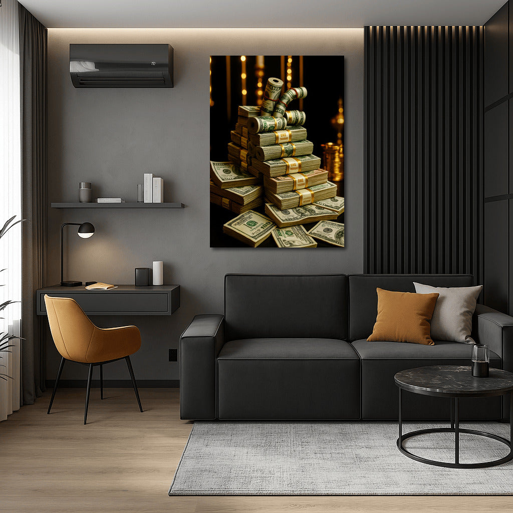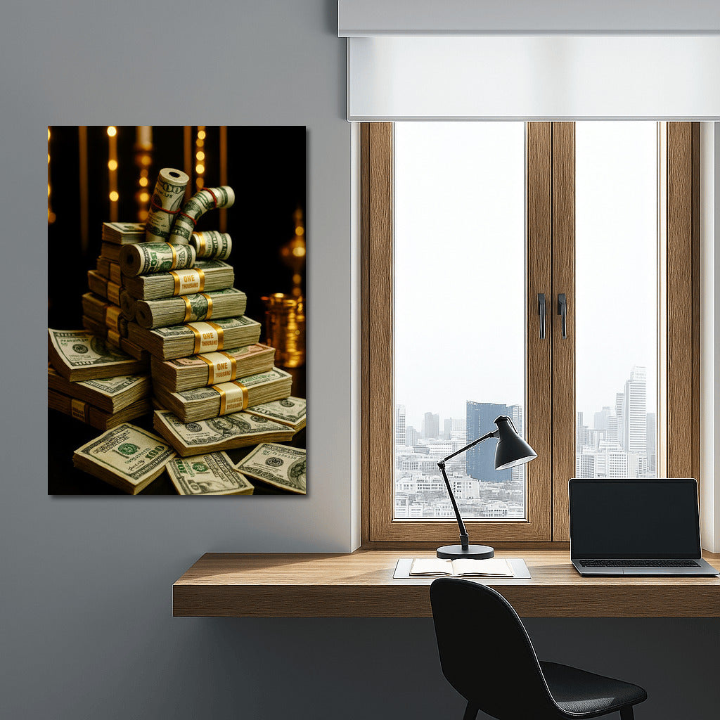 Dive into the world of wealth with this painting. The pyramid of dollars will add chic and inspiration to your interior. Wall art! See more from the collection: Money Art