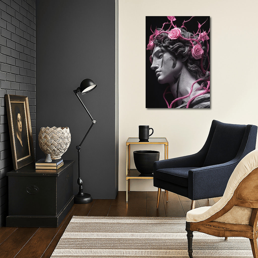 Dive into a fantasy world with this painting: a mystical figure in a crown of roses. Perfect wall art for inspiration. See more from the collection: Mixed Wall Art