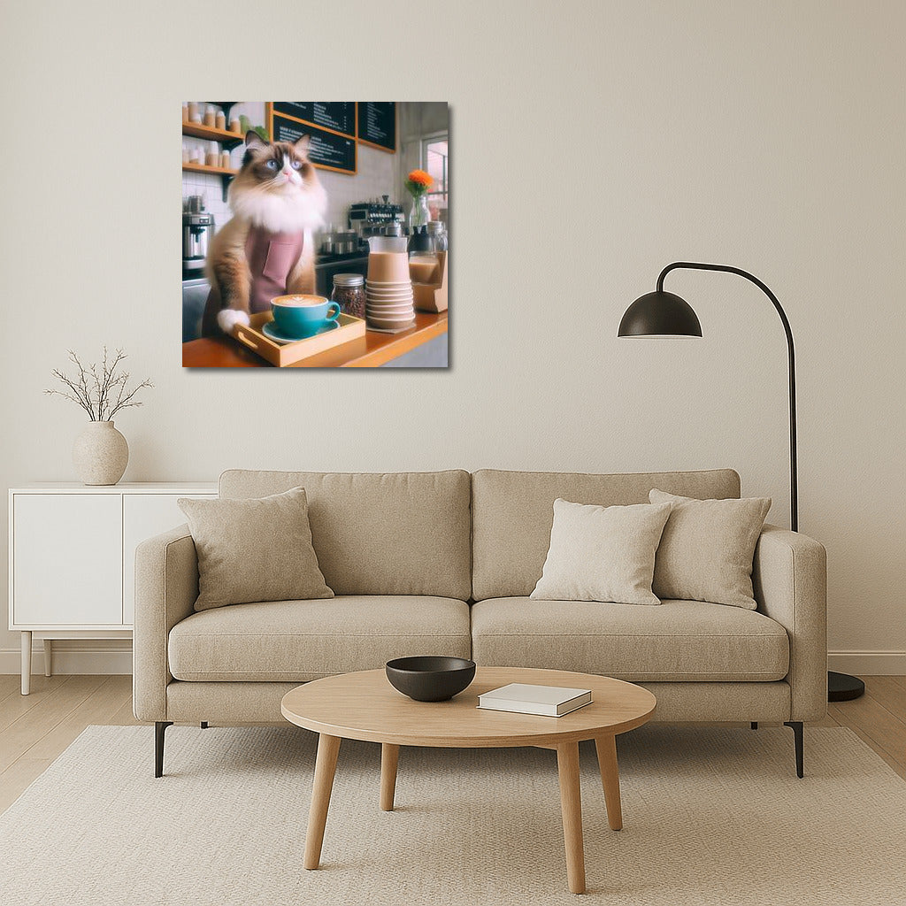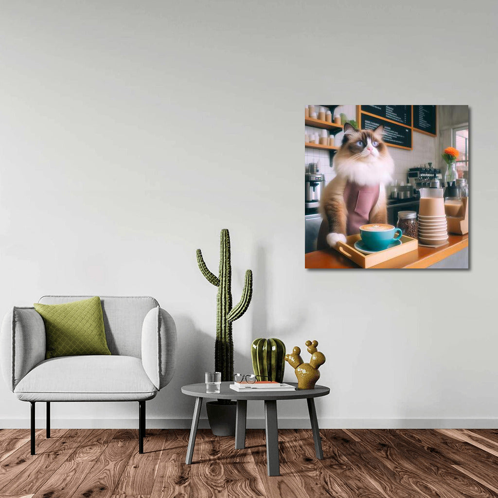 Ragdoll Barista: Coffee Comfort in Paws Wall Art