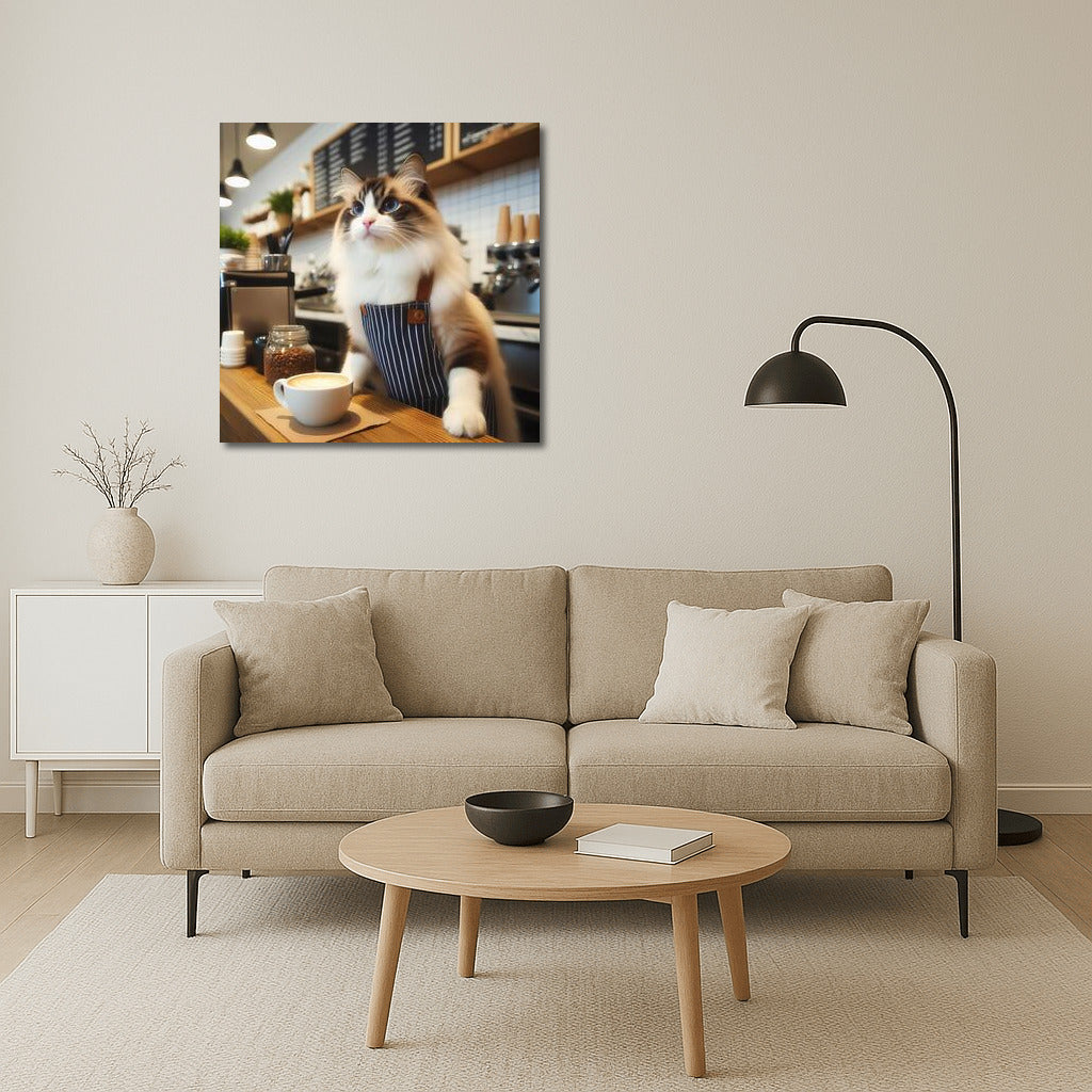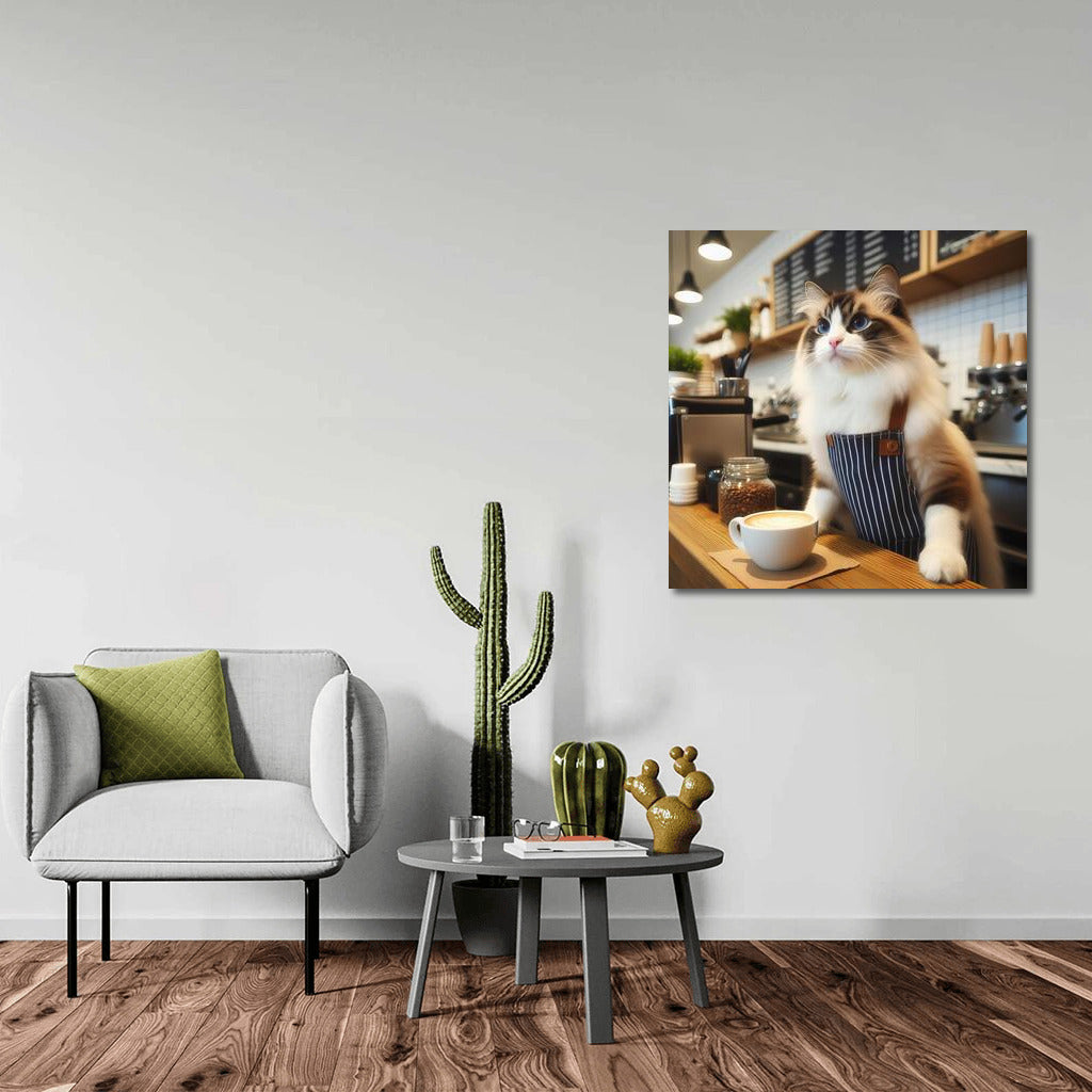 Ragdoll Cat-Barista: Aromatic Morning in the Coffee Shop Wall Art