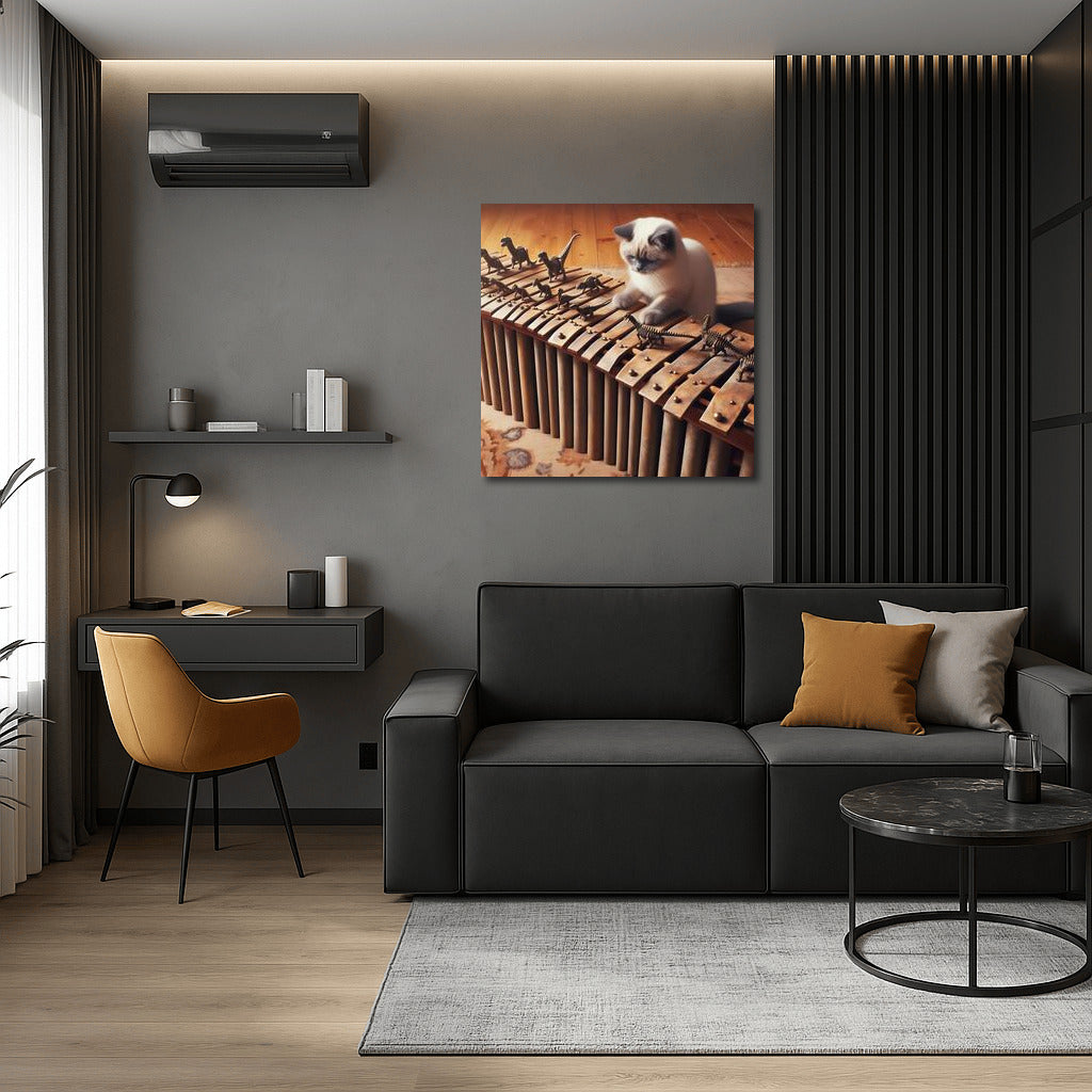 Ragdoll Cat on Dinosaur Bone Xylophone: Musical Wonder Wall Art