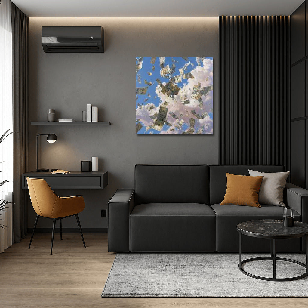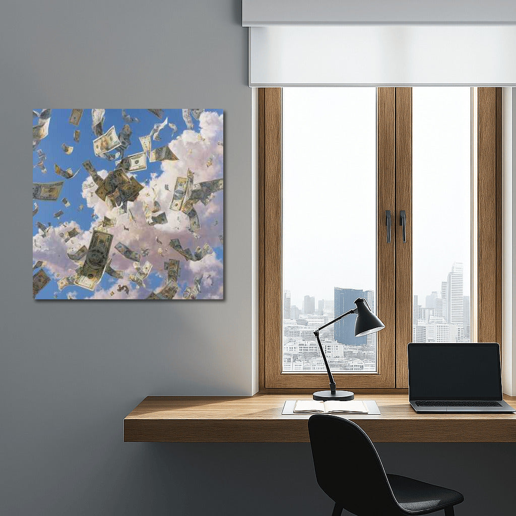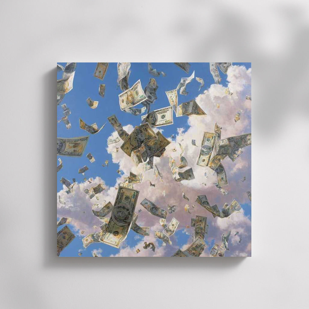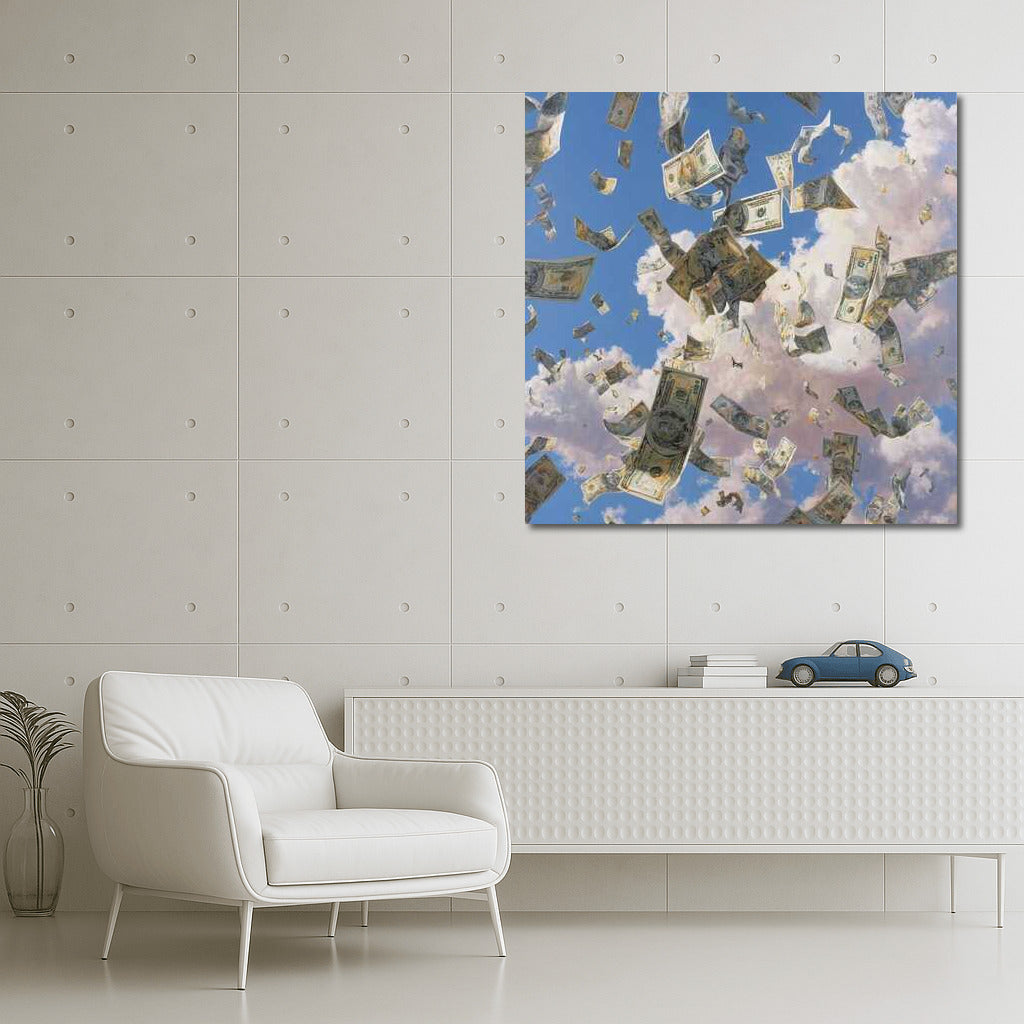 Rain of Money: Flight of Banknotes in the Sky Wall Art