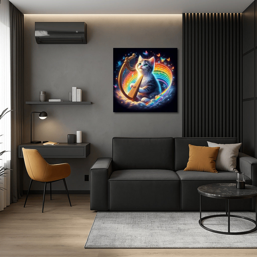 Rainbow Harp Melodies: The Cat Who Brings Nature to Life Wall Art